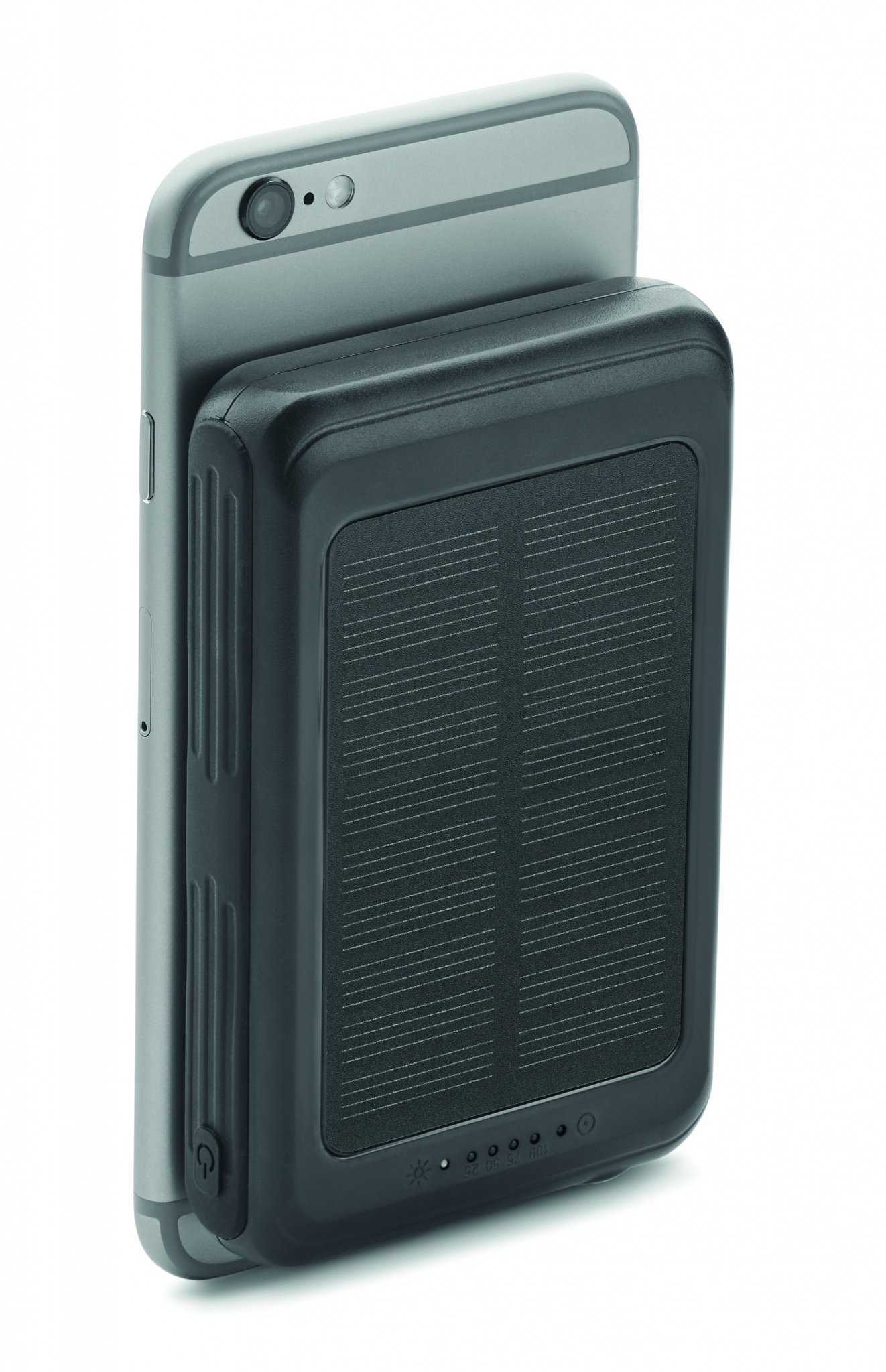 Магнитное беспроводное зарядное устройство (5 Вт) и аккумулятор на солнечной батарее 5000 мАч из пластика. Выход: DC 5V/2A. Совместим с iPhone® 12 и новее. Включает дополнительное магнитное металлическое кольцо для беспроводной зарядки немагнитных устройств.