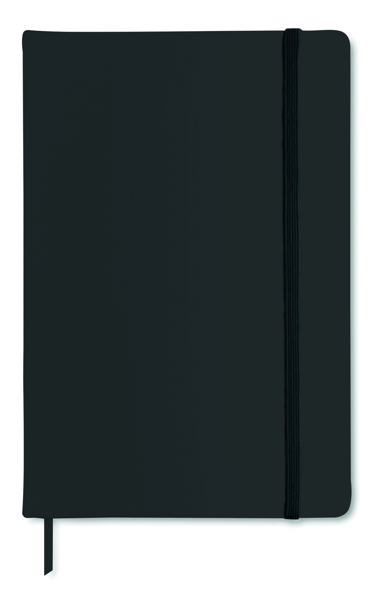 Блокнот формата А5 с ПУ обложкой на 96 нелинованных листов (192 страницы). Застегивается на резинку.