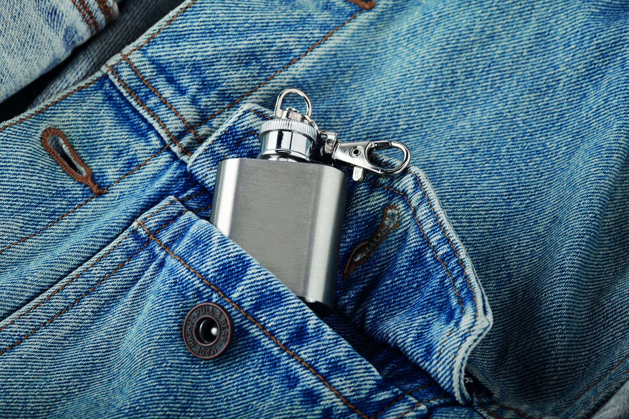 Брелок с карабином в форме фляги из нержавеющей стали. Емкость: 28 мл.
