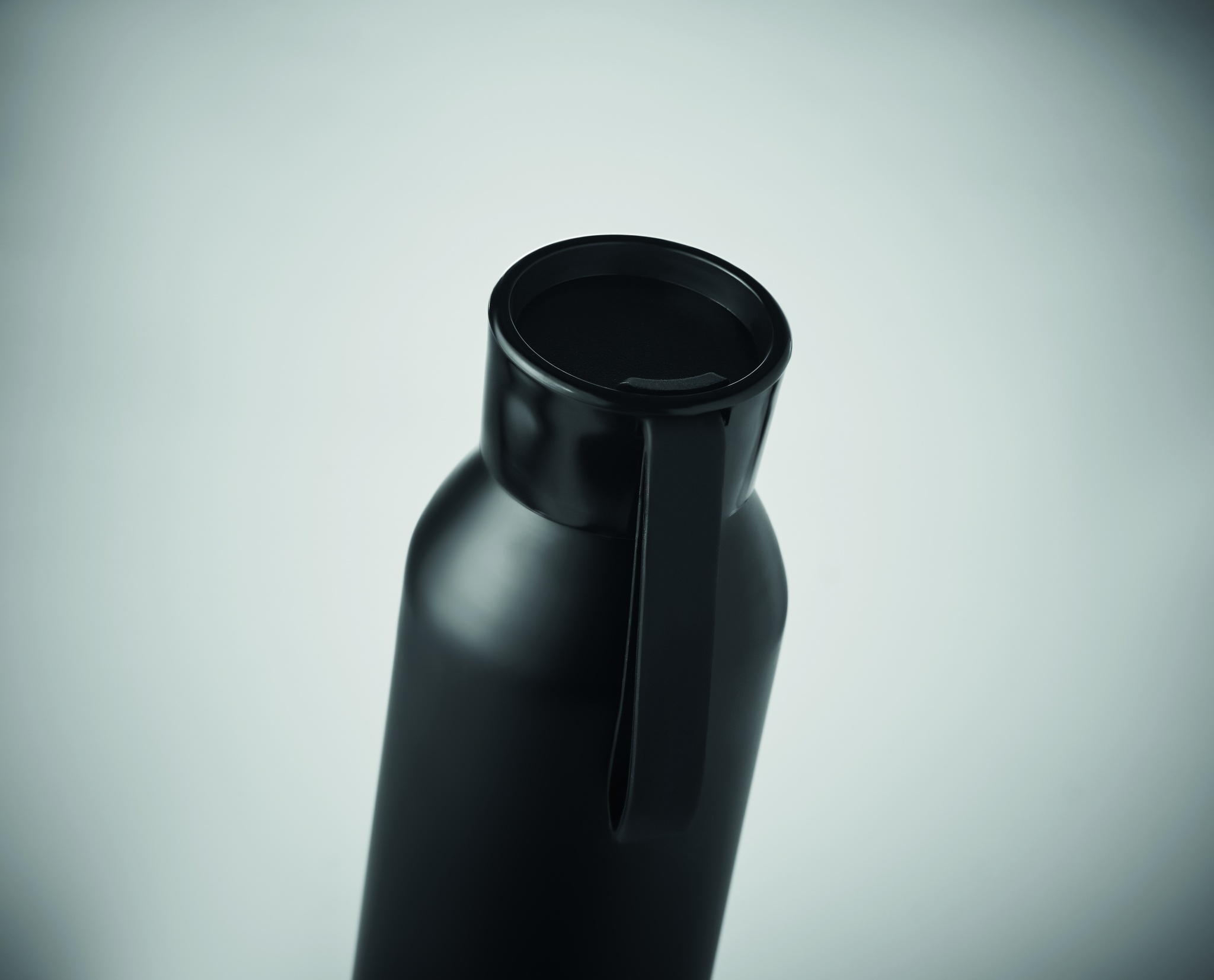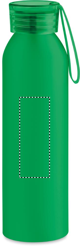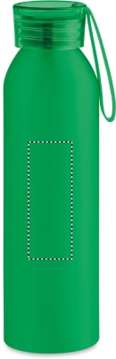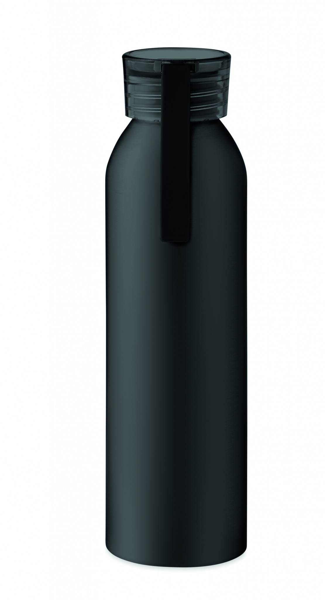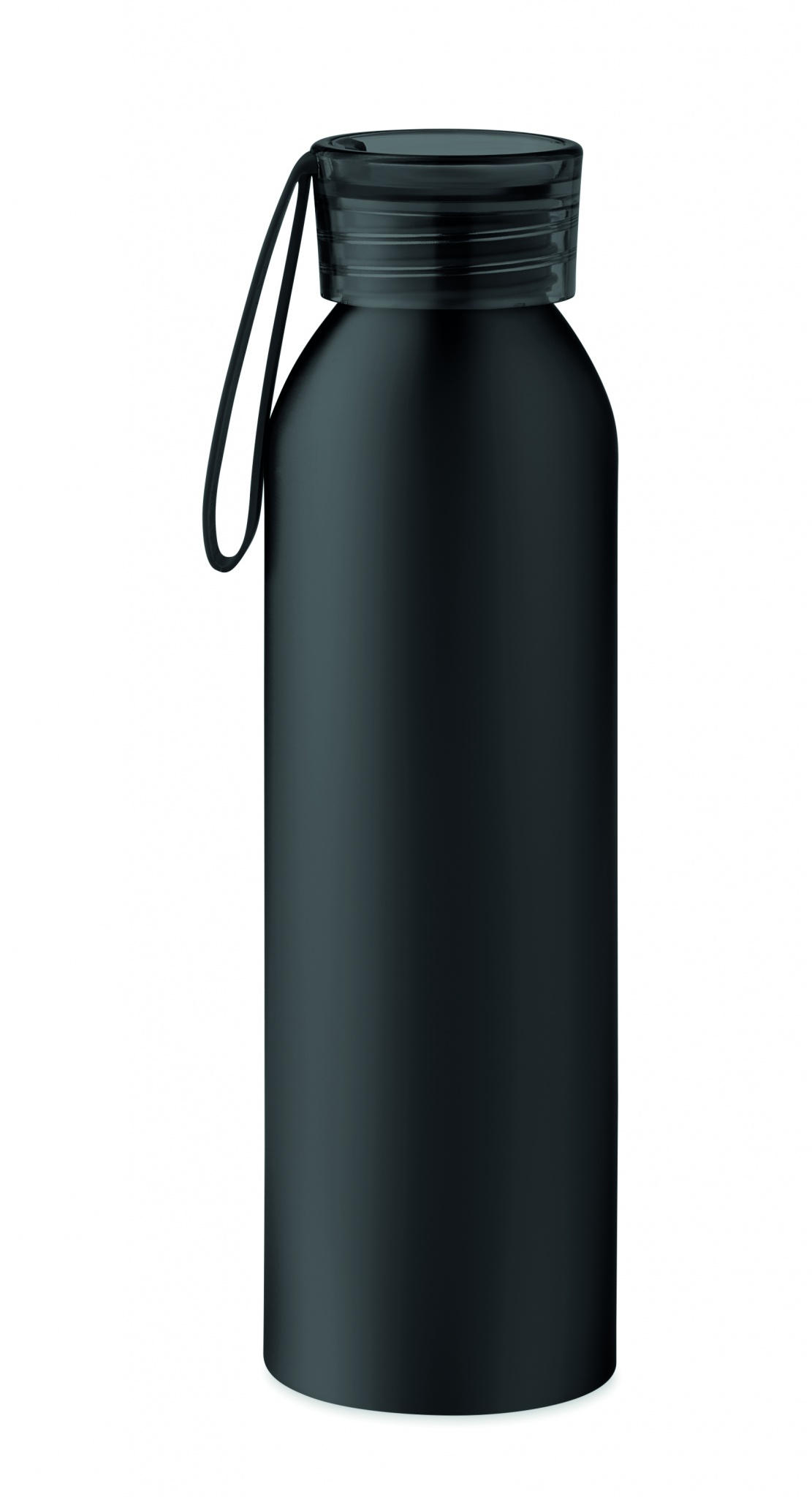 Бутылка одностенная алюминиевая с крышкой из полистирола и силиконовым ремешком. Емкость: 600 мл. Герметична.