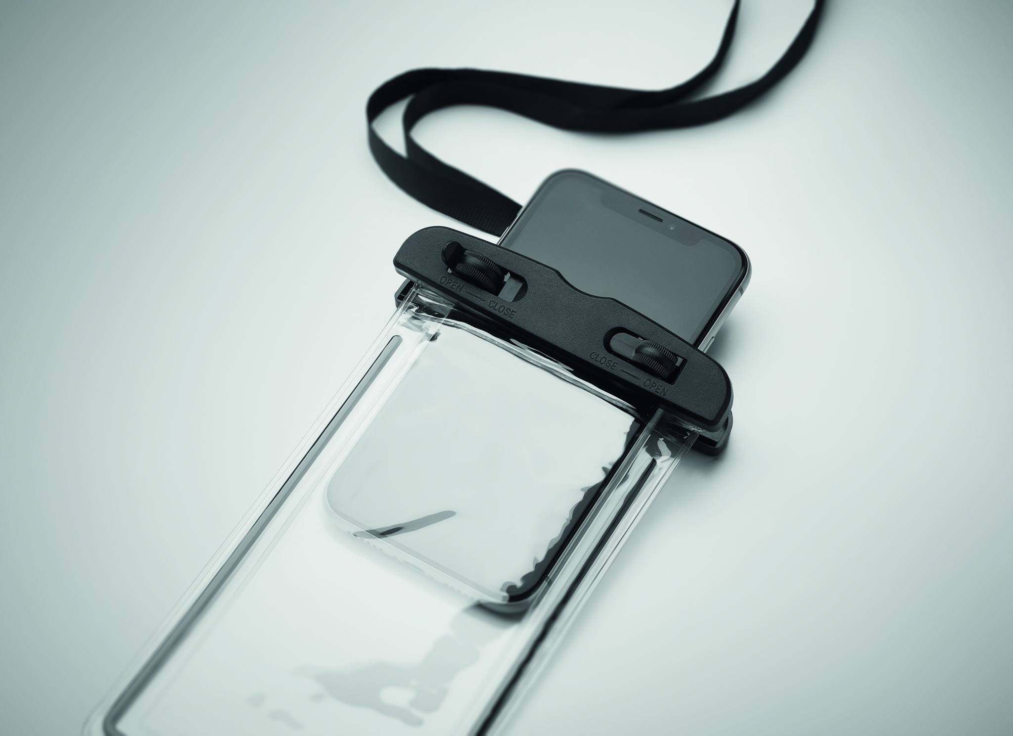 Водонепроницаемый чехол для телефона с регулируемым съемным ремешком. Степень водонепроницаемости: IPX 6. Подходит для телефонов 6,7 дюймов.