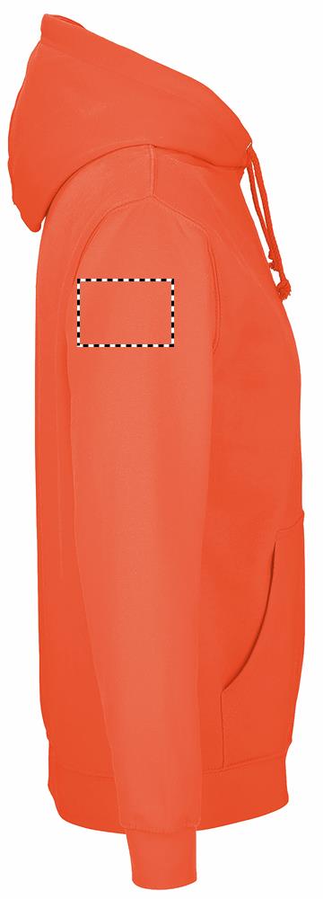 SOL'S CONDOR, Толстовка с капюшоном унисекс, 80% хлопка - 20% переработанного полиэстера, сертифицирована. Матовый флис 280 с втачными рукавами, манжеты, воротник и подол в рубчик 1X1. Карман-кенгуру, капюшон на подкладке с однотонным шнурком и металлическими люверсами. По поводу соответствия размеров, пожалуйста, обратитесь к таблице размеров в разделе документации к изделию.