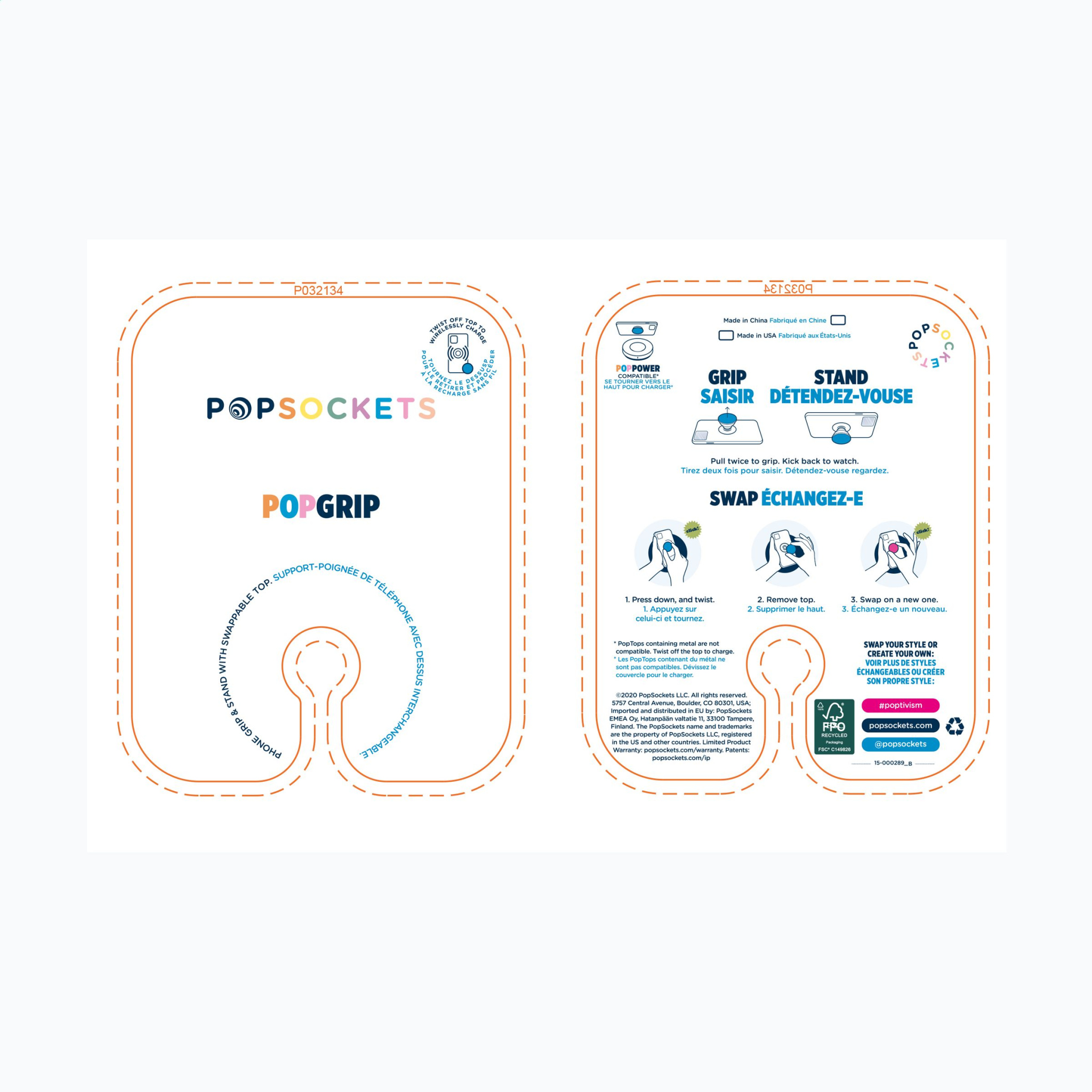 PopSocket® — это удобный многофункциональный телефонный аксессуар. С новым сменным пластиковым PopGrip и сменным PopTop. Этот PopGrip совместим с беспроводной зарядкой благодаря легкому снятию PopTop. Прикрепите этот предмет к задней части телефона с помощью клейкой ленты 3M и используйте удобные функции: удобный захват для лучшего удержания, функциональная подставка и держатель для селфи. Может быть размещен в 2 различных выдвижных положениях и гибкий, поэтому вы можете расположить смартфон так, как вам нравится. PopSocket® легко снимается и может быть использован повторно до 10 раз. Подходит для всех распространенных типов смартфонов, iPhone и других устройств. Ознакомьтесь с прилагаемыми инструкциями для оптимального использования и обслуживания PopSocket®. Дополнительная информация о сроках поставки: 60 - 2500 единиц: 1 неделя, 2500 - 5000 единиц: 2 недели. Более 5000 единиц, цена и сроки поставки по запросу. PopSockets® доступны только с оттиском.