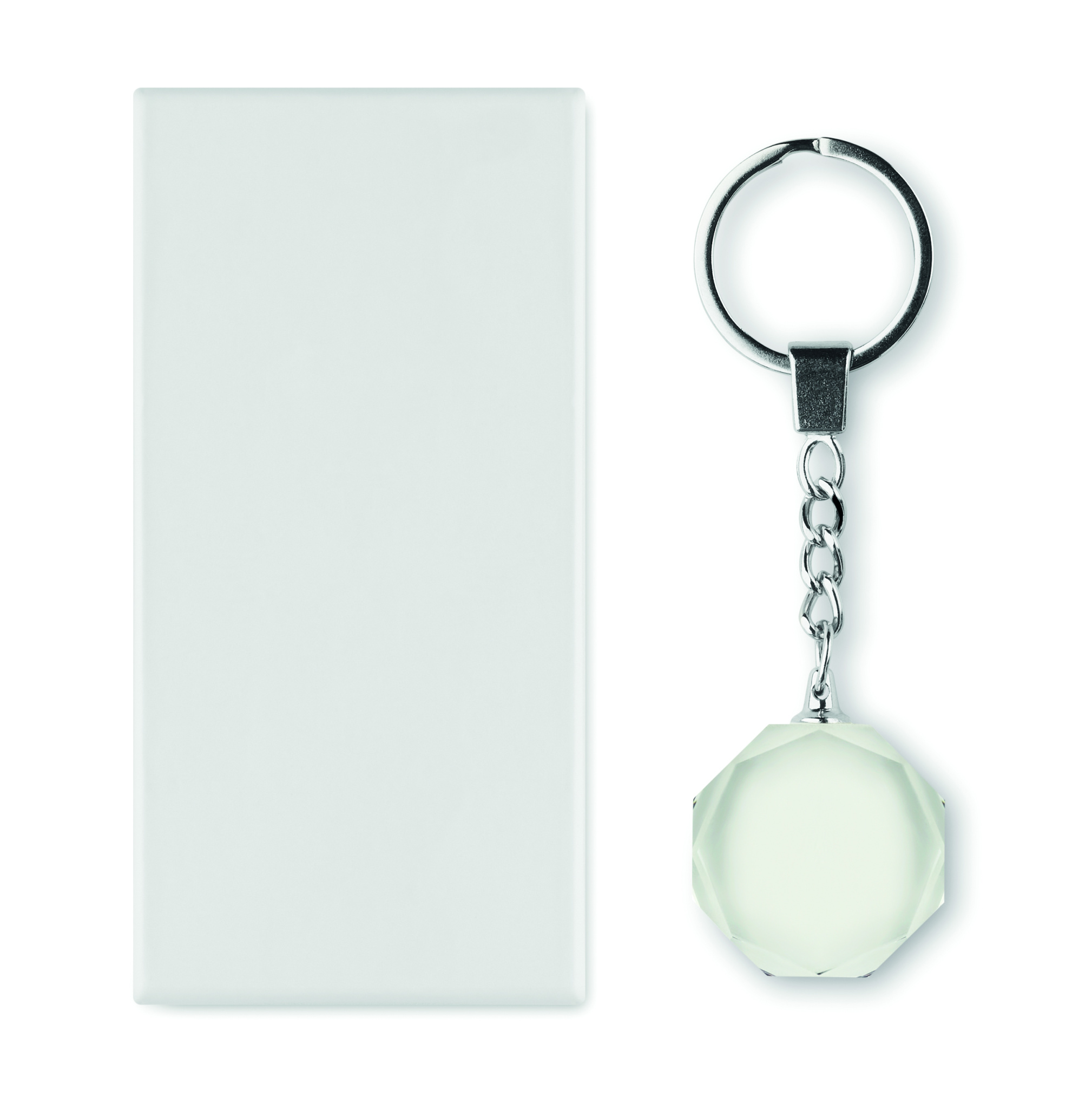Glass round award key ring. Presented in a gift box.