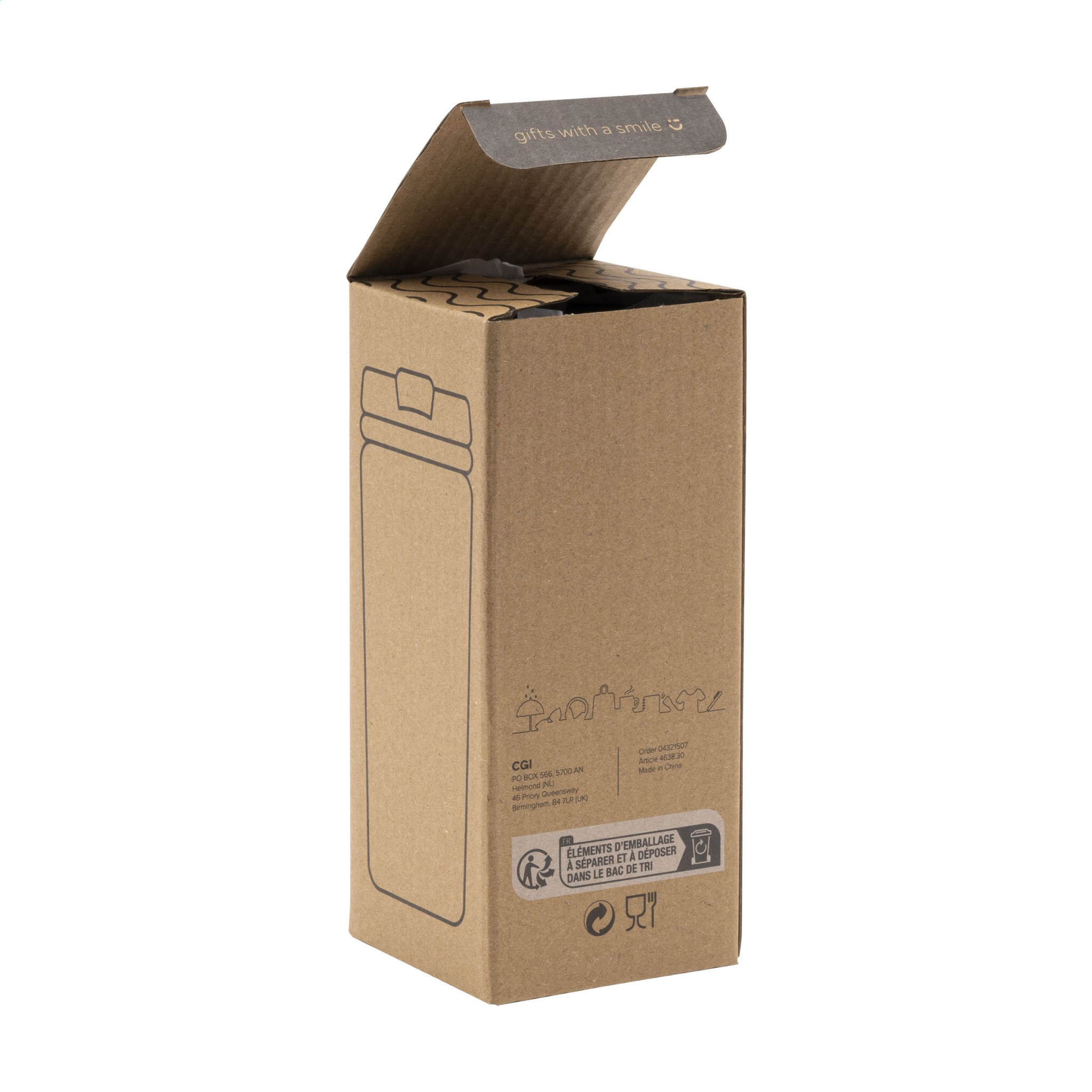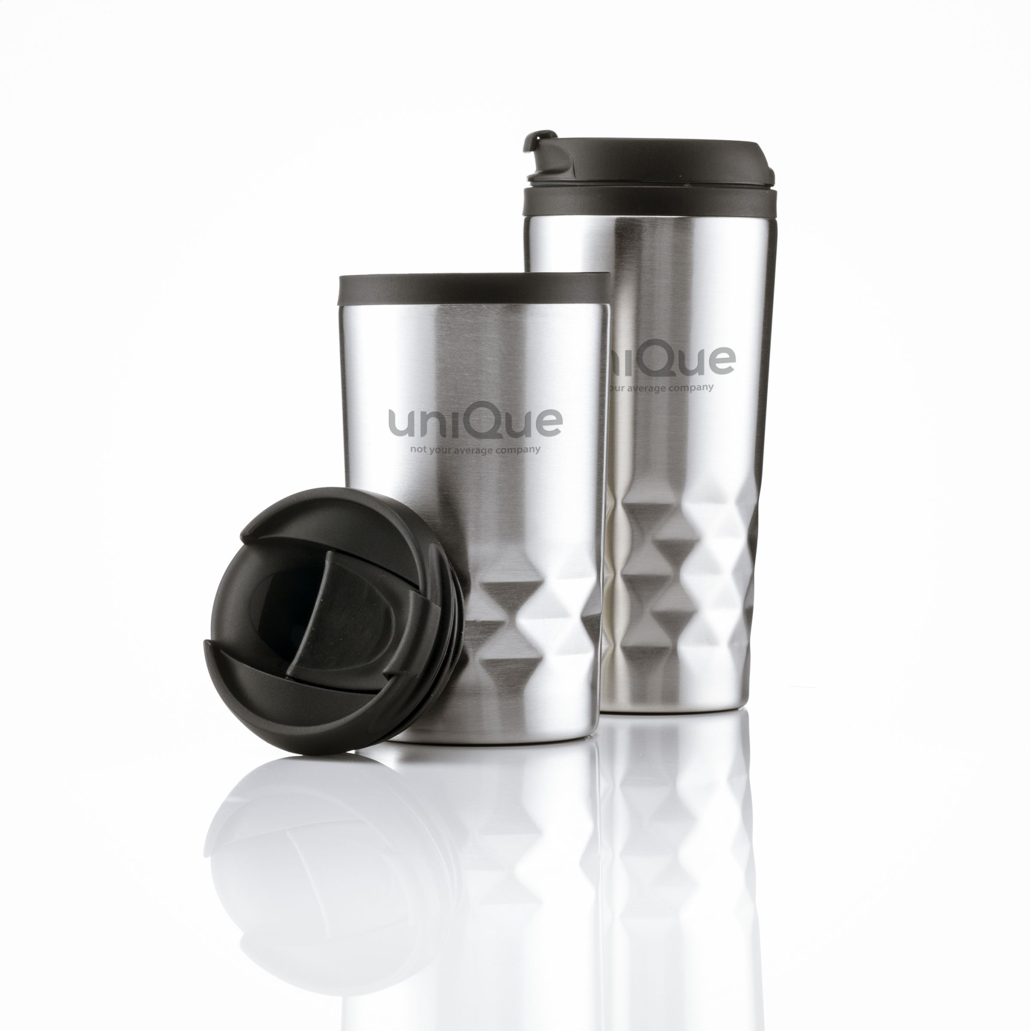Термокружка из нержавеющей стали с двойными стенками, герметичная, с завинчивающейся крышкой, открывающаяся щелчком. Внутренняя стенка из полипропилена. С характерным 3D-геометрическим ромбовидным узором на держателе. Нескользящее основание. Емкость 300 мл. Каждый предмет упакован в индивидуальную коробку.