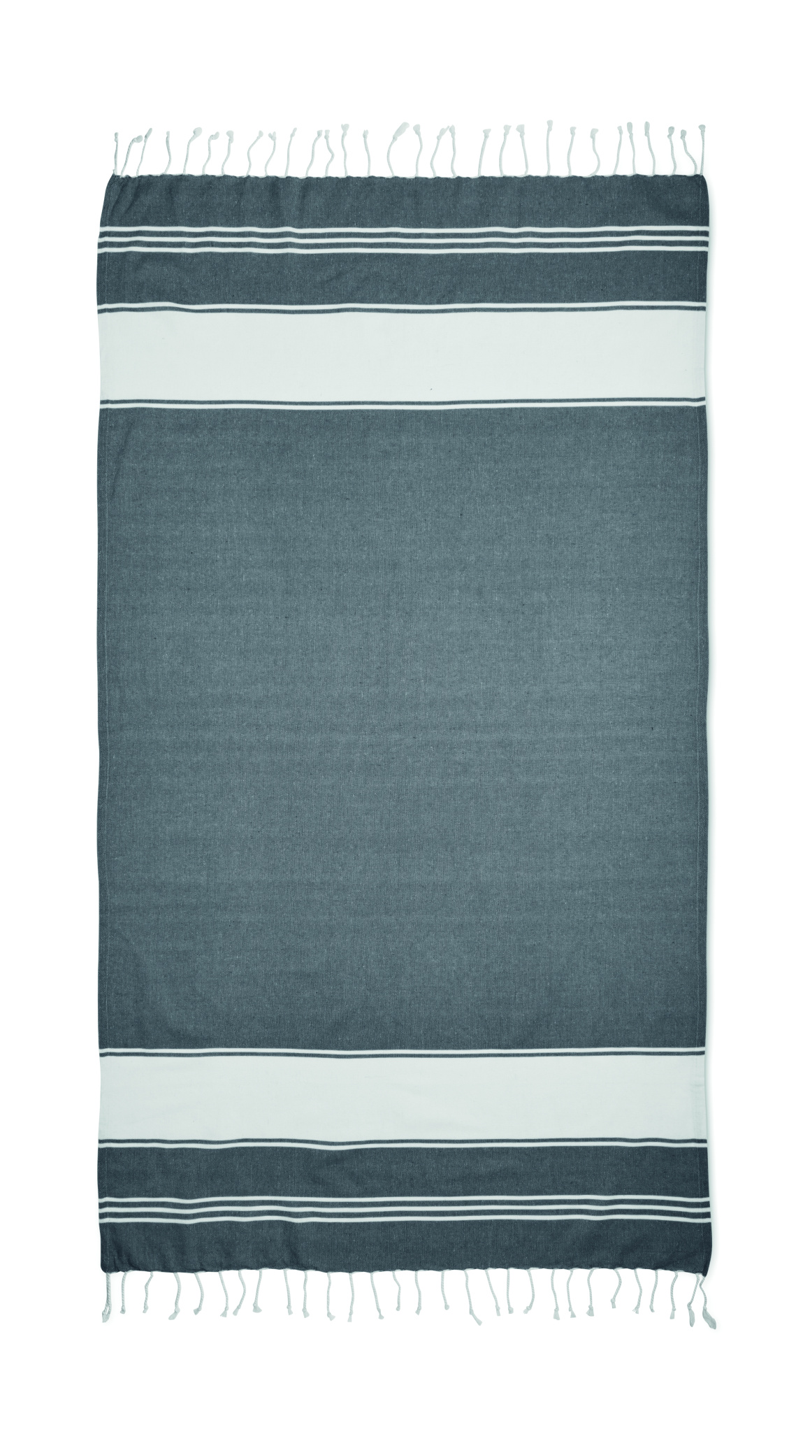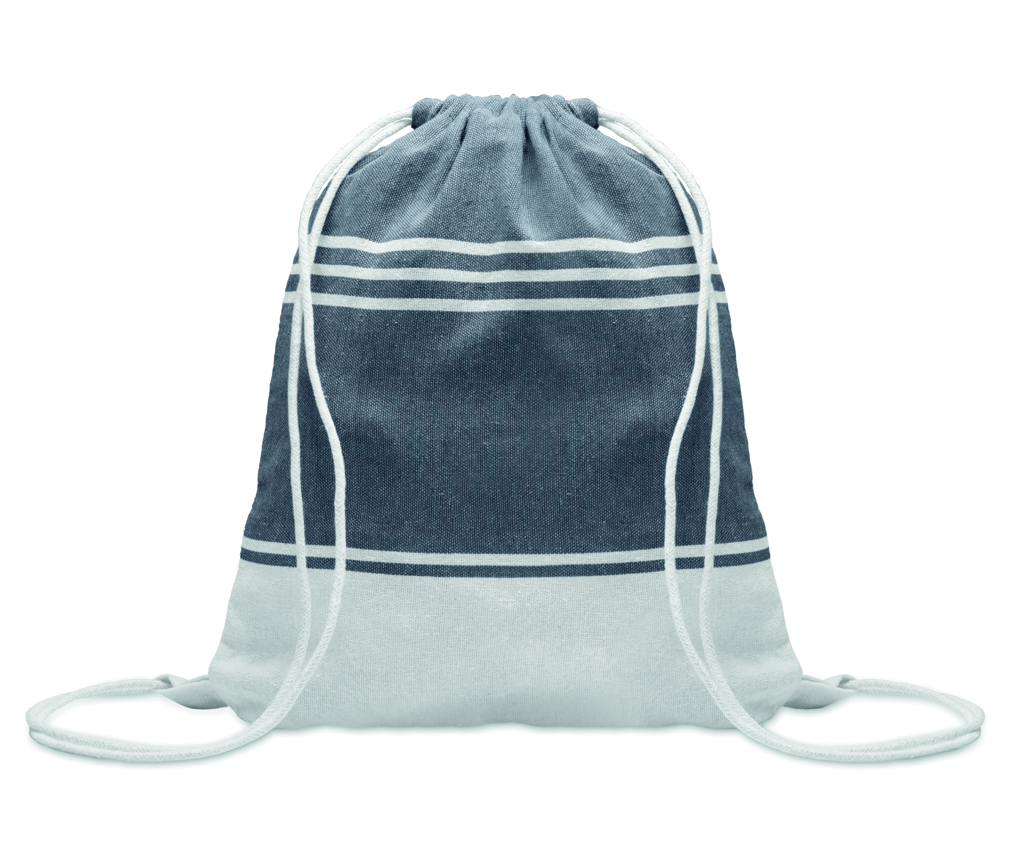 Set of hammam beach towel with drawstring bag. 70% recycled cotton and 30% recycled polyester 180 gr/m². 90x160 cm.