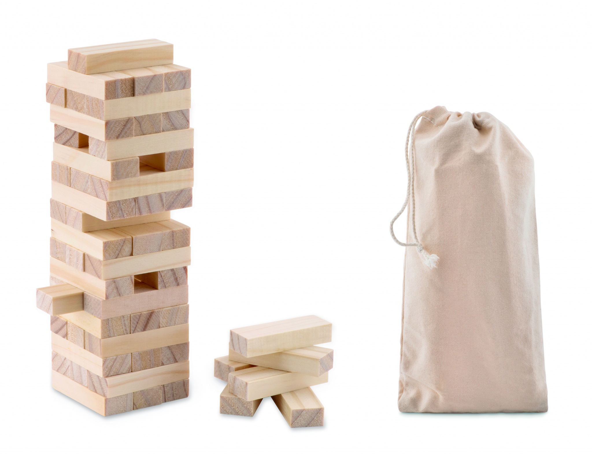 Игра деревянная башня на 54 элемента в переносном хлопковом мешочке.