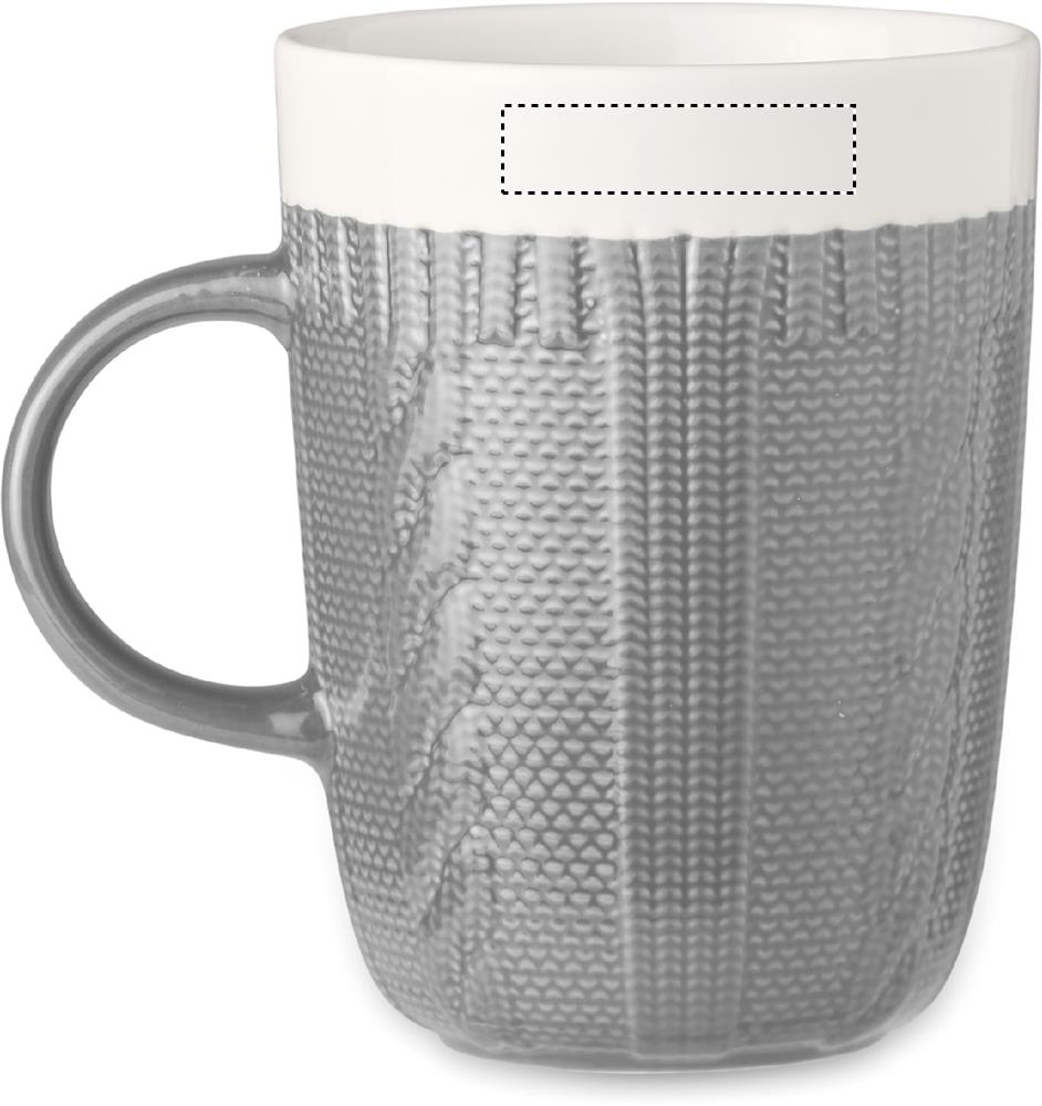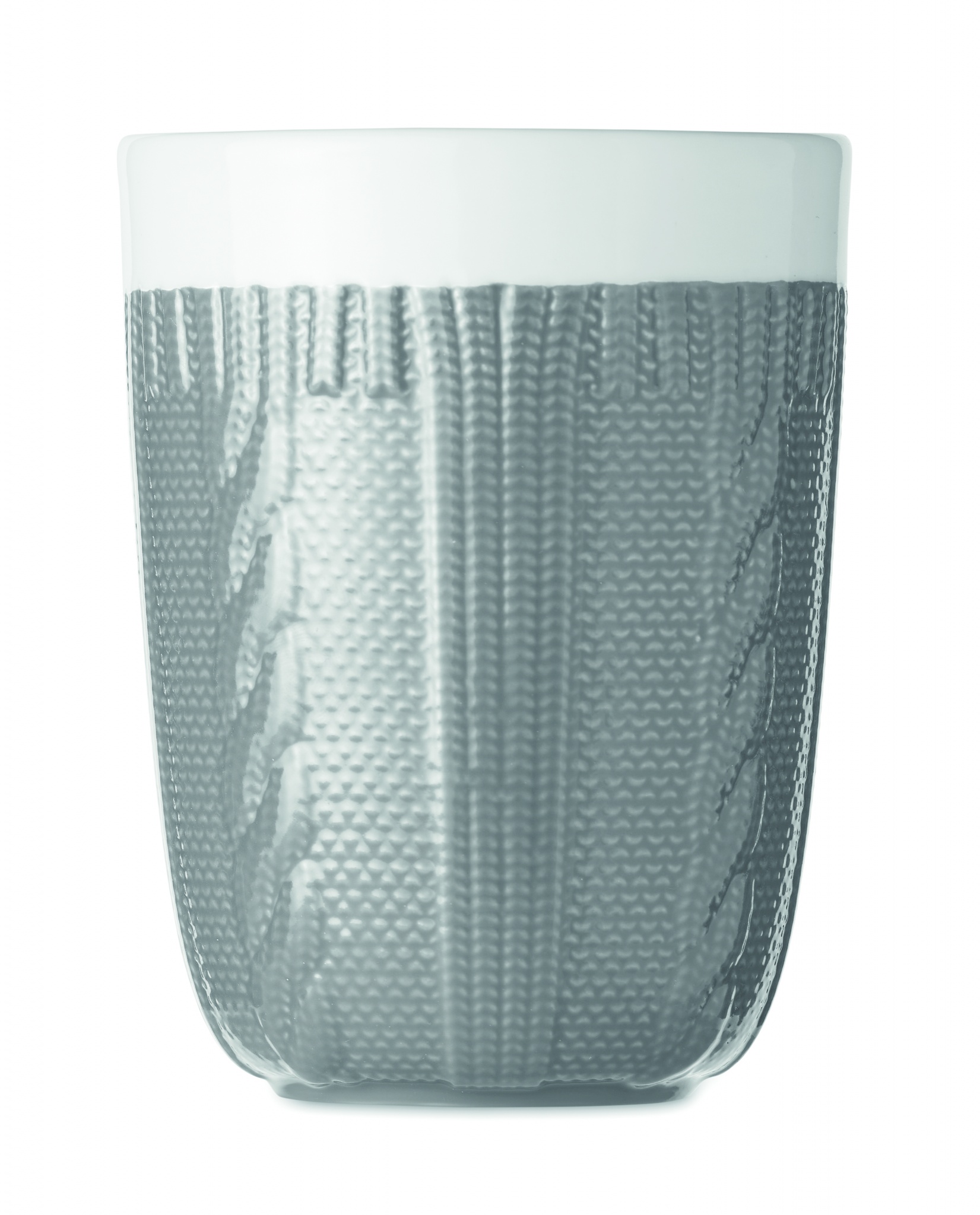 Керамическая кружка стилизованная под вязаное покрытие. Емкость: 310 мл. Поставляется в индивидуальной коробке.