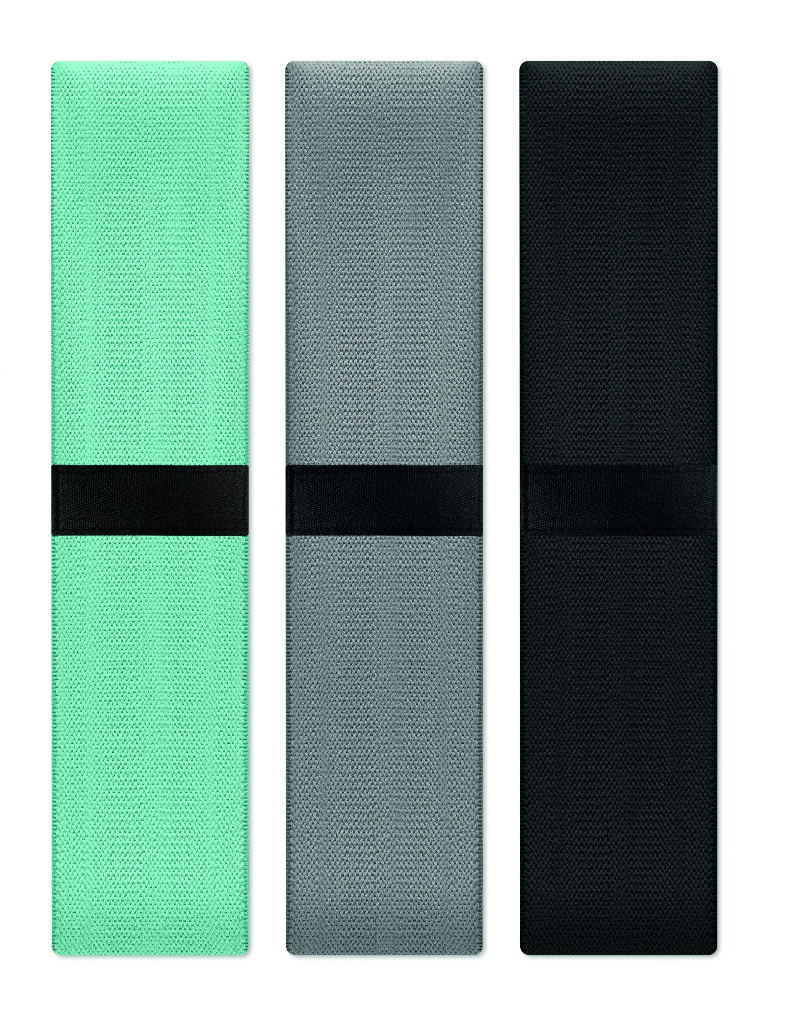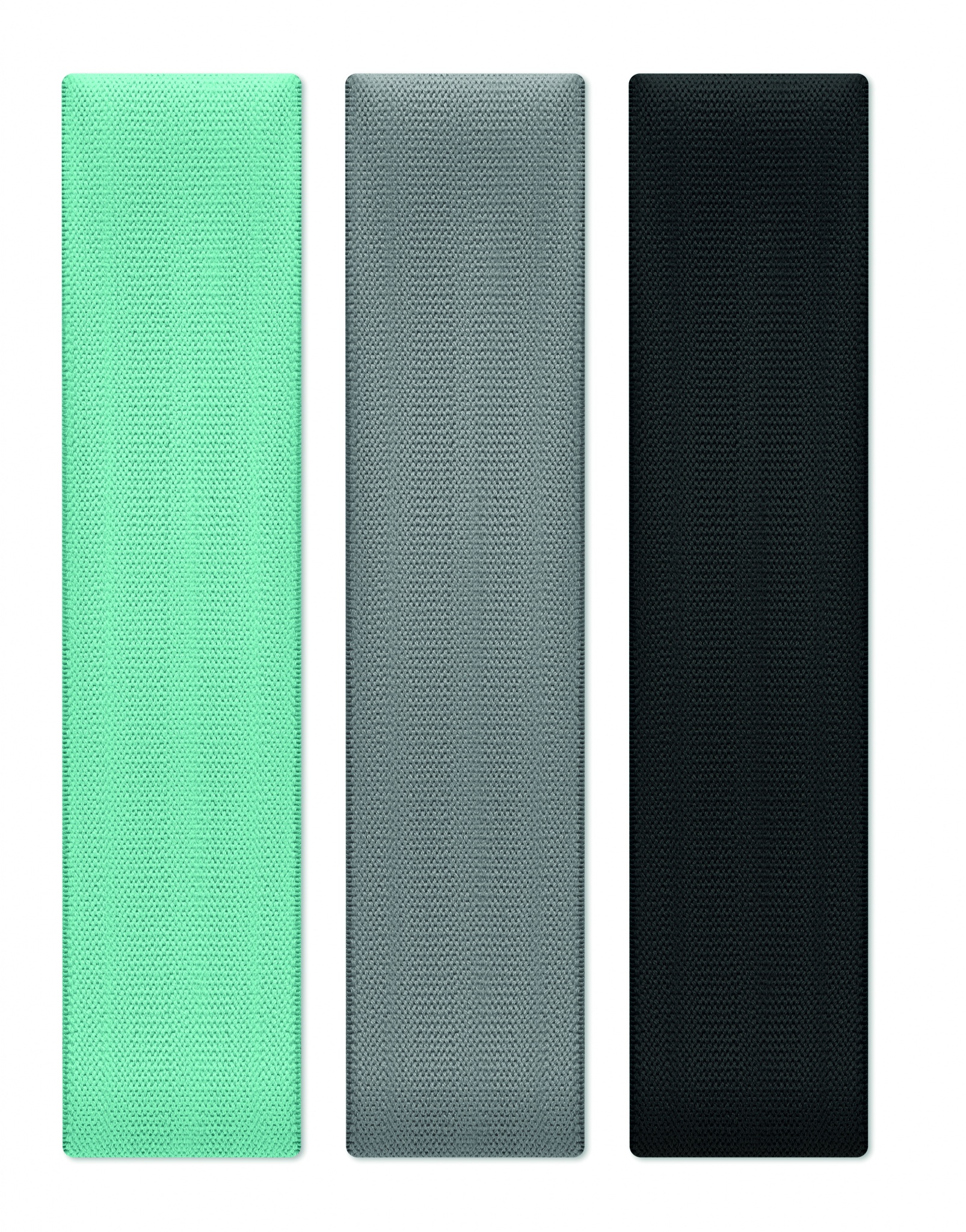 Набор из 3 фитнес лент из терилена, хлопка и латексного шелка в чехле из RPET. Все фитнес-ленты имеют разную силу растяжения для выбора оптимальной нагрузки.