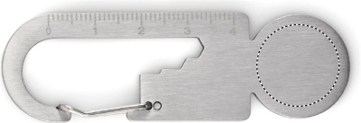 Trolley token with key ring in recycled stainless steel with multi-function tool including bottle opener, ruler and hex driver wrench (M1/M2/M3/M4).
