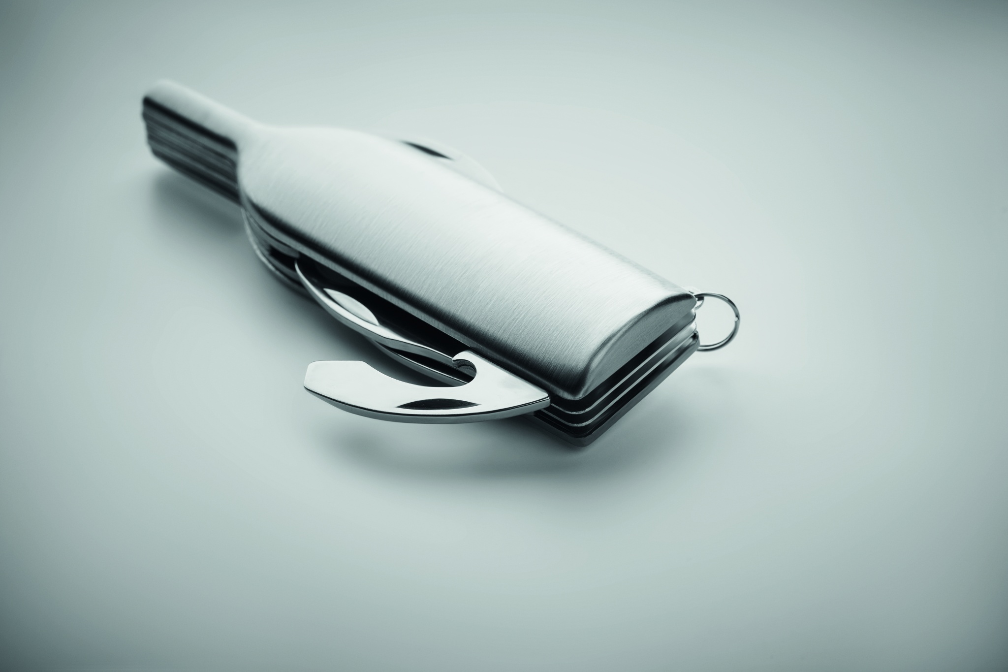 Карманный нож в форме бутылки вина из нержавеющей стали с 4 функциями: открывалка для бутылок, нож, штопор и брелок для ключей.