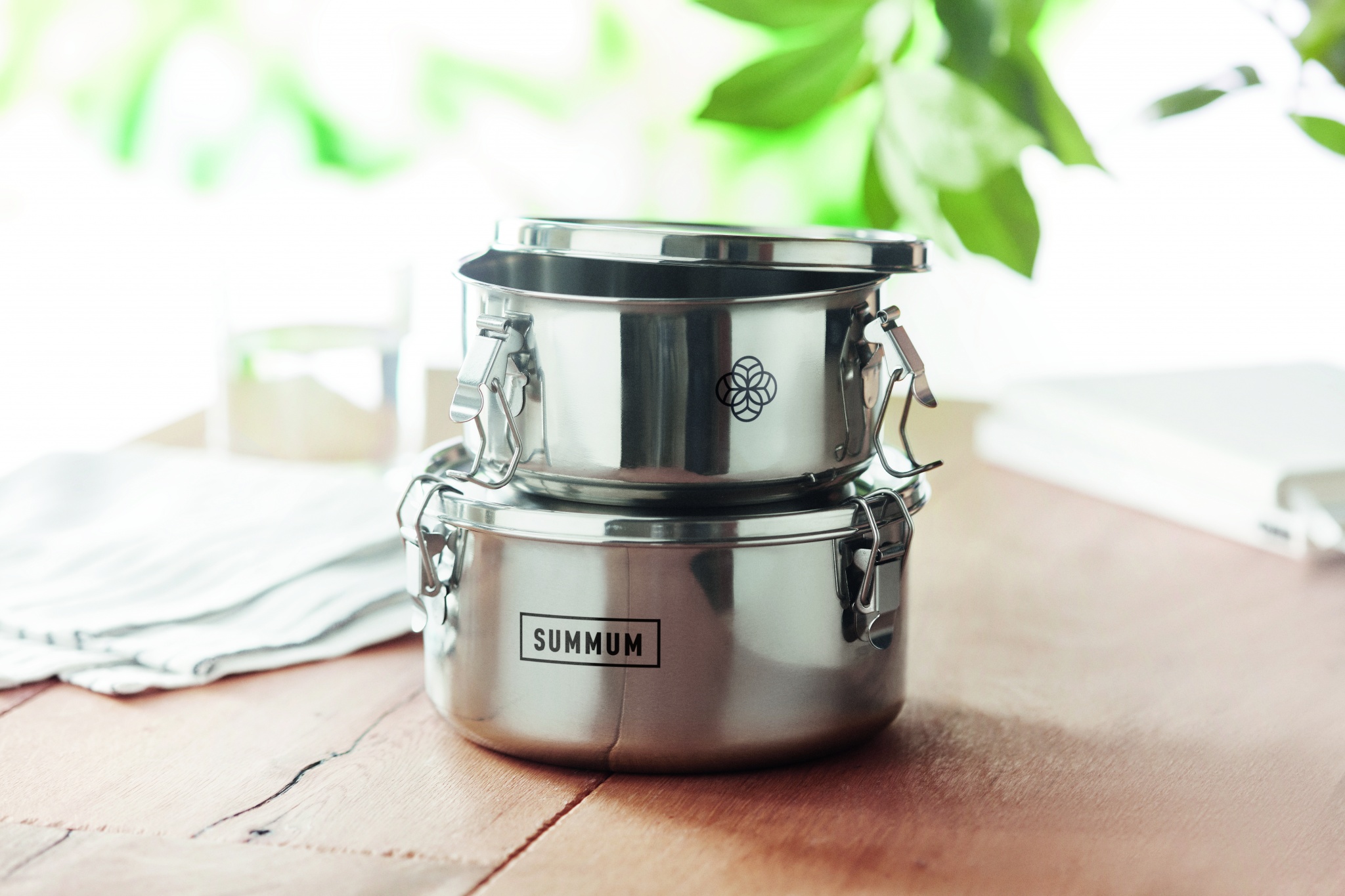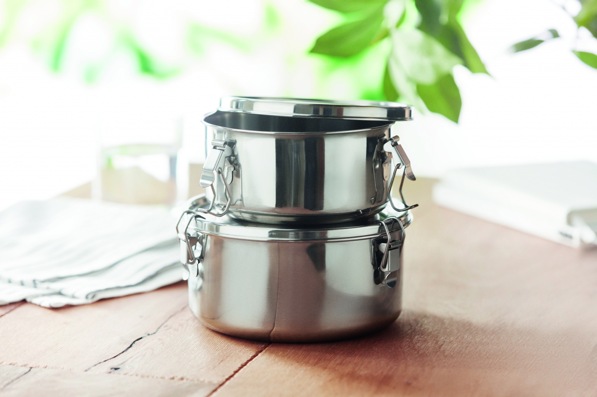 Набор контейнеров из нержавеющей стали с прочными боковыми застежками. Вместимость: 450 мл. и 900 мл.