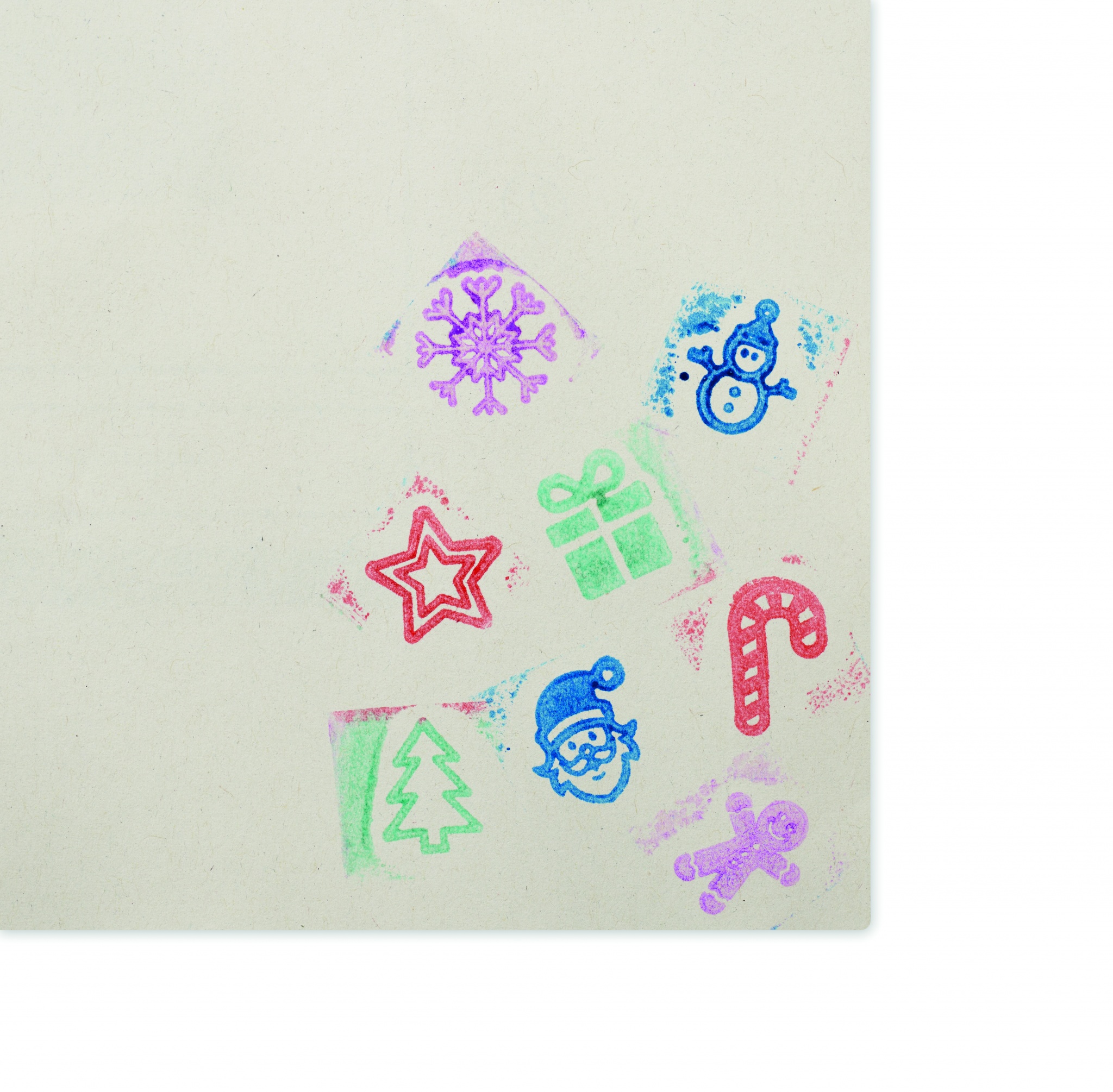 Набор из 8 деревянных рождественских штампов и разноцветной чернильницы (4 цвета). Поставляется в хлопчатобумажном мешочке на шнурке.
