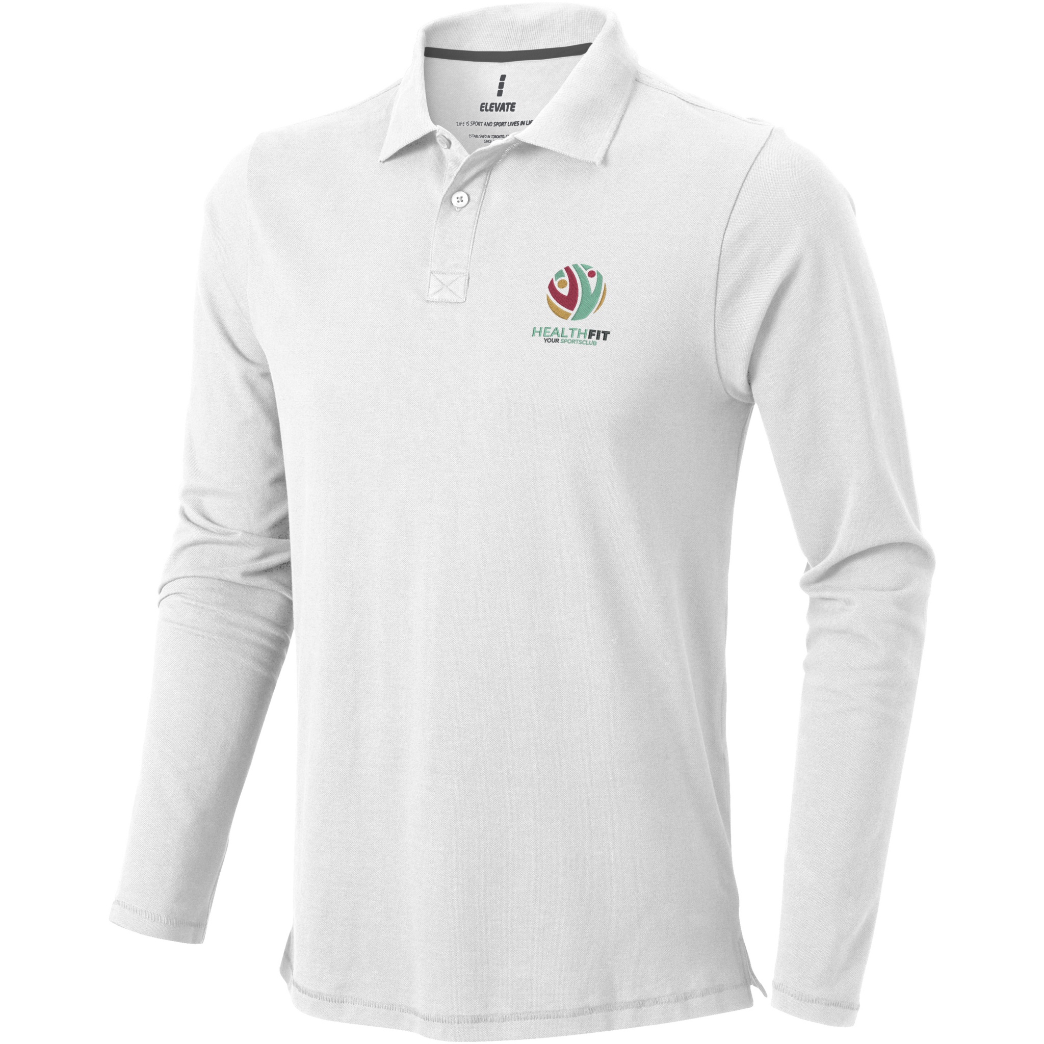 Oakville мужская футболка-поло с длинным рукавом, Белый