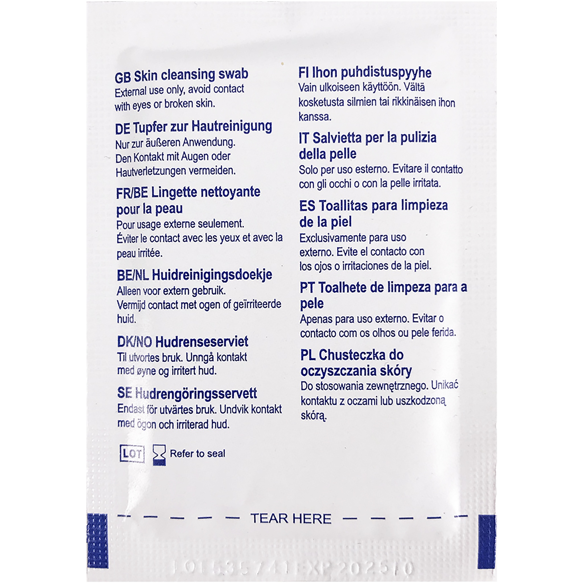 Влажные салфетки для дезинфицирования рук и поверхностей, с которыми часто соприкасаются (смартфоны, тележки в супермаркетах, клавиатуры и т. д.). Салфетка упакована в пакет с алюминиевым покрытием (8,5x6 см). В разложенном виде имеет размер 18x12 см, поэтому ее легко использовать на больших поверхностях. Содержит 70% изопропиловый спирт, который хорошо дезинфицирует и быстро испаряется после использования.