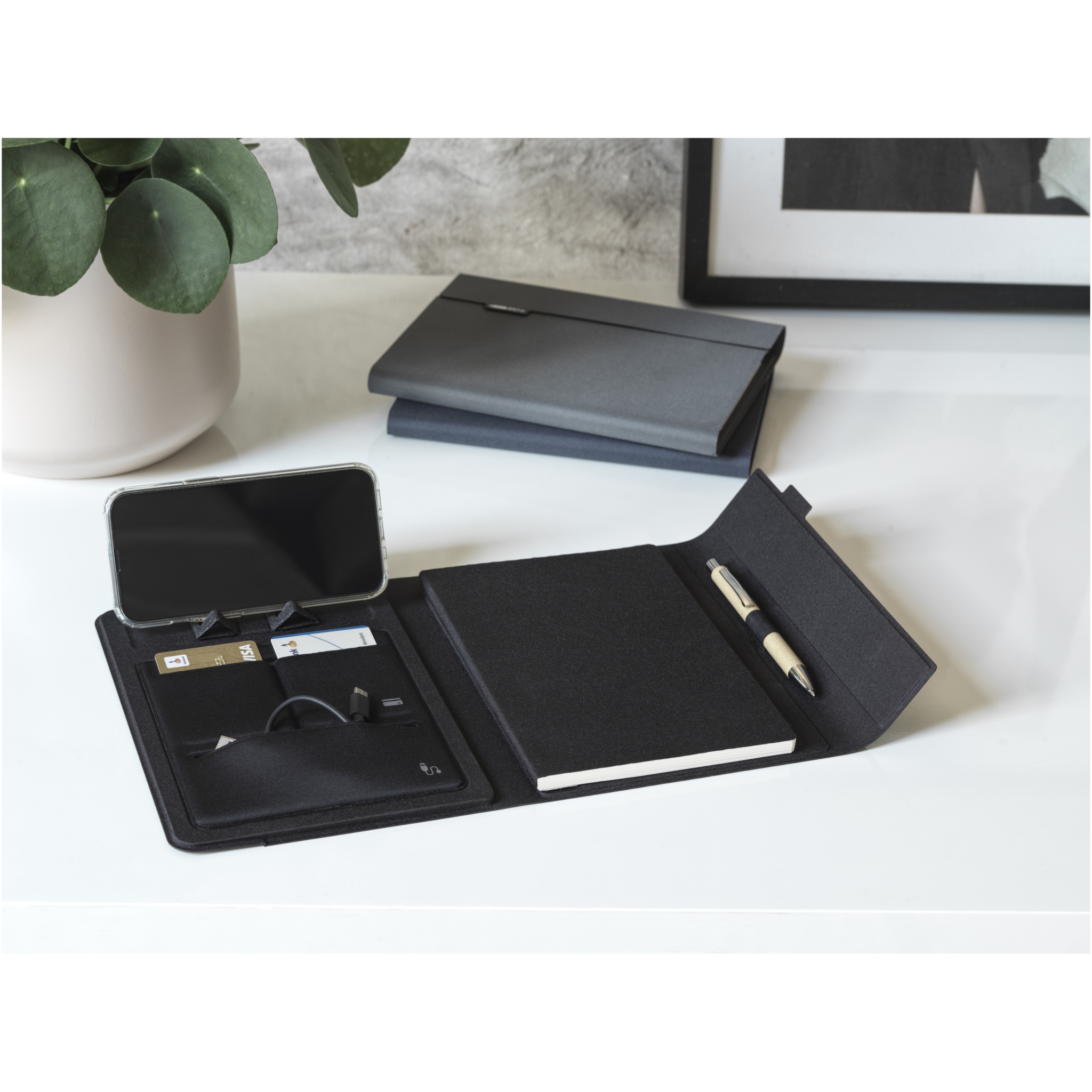 Сертифицированная RCS папка-органайзер Liberto частично изготовлена из переработанного полиэстера, бывшего в употреблении, что делает данную папку более экологичным выбором, поскольку она помогает сократить использование первичного сырья. Имеет петлю для ручки, карман-гармошку и 64 листа в линейку кремового цвета из переработанной бумаги плотностью 80 г/м² из экологически чистых источников. Ручка и другие аксессуары, представленные на фотографиях, в комплект поставки не входят.