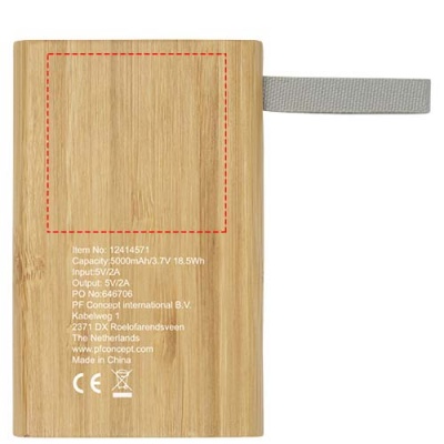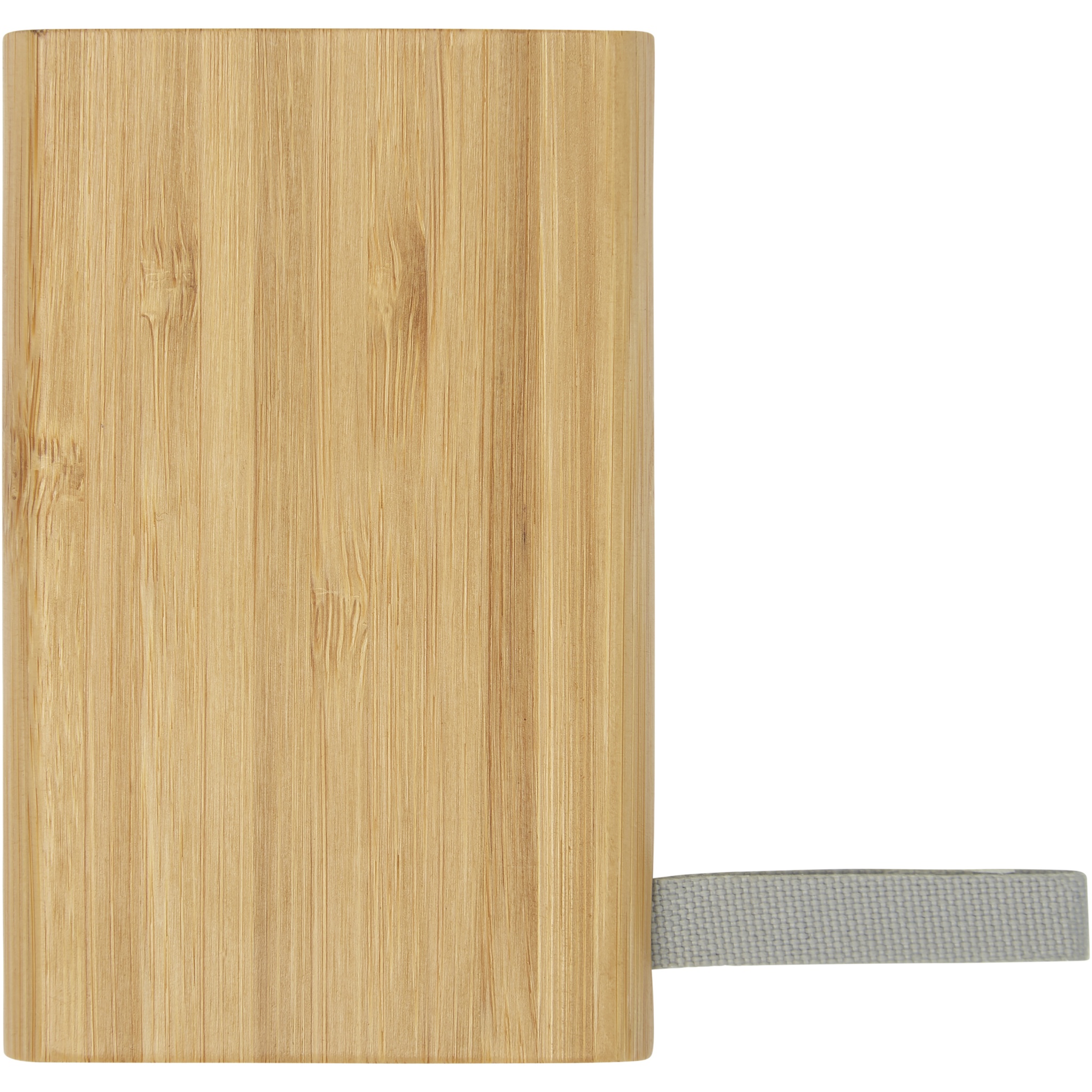 Бамбуковое портативное зарядное устройство с резервным питанием 5000 мАч для мобильных телефонов или других цифровых устройств. Имеет светодиодные индикаторные фонари и перемычки из переработанного ПЭТ. В комплект входит кабель Micro-USB для зарядки. Поставляется в подарочной упаковке, которая на 100 % сертифицирована FSC. В комплекте содержится инструкция, выполненная по стандарту FSC. Поскольку бамбук — природный материал, цвет и размер сырья могут быть разными, что, в свою очередь, может повлиять на итоговый вид отделки.