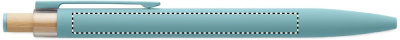 Recycled aluminium push ball pen with bamboo button with matching colour detail and matching metal clip. Blue ink.