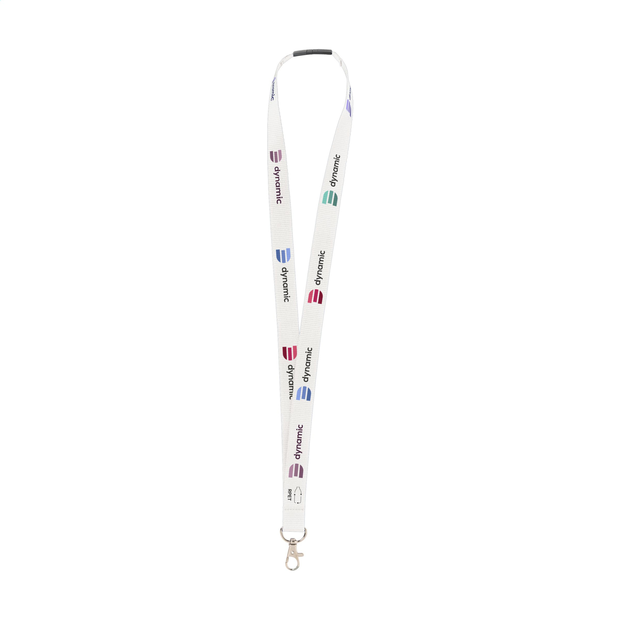 Прочный плетеный шнур из полиэстера RPET (из переработанных ПЭТ-бутылок). Поставляется с металлическим карабином и пластиковым замком безопасности. Включает полноцветную сублимационную печать. Сделано в Европе.