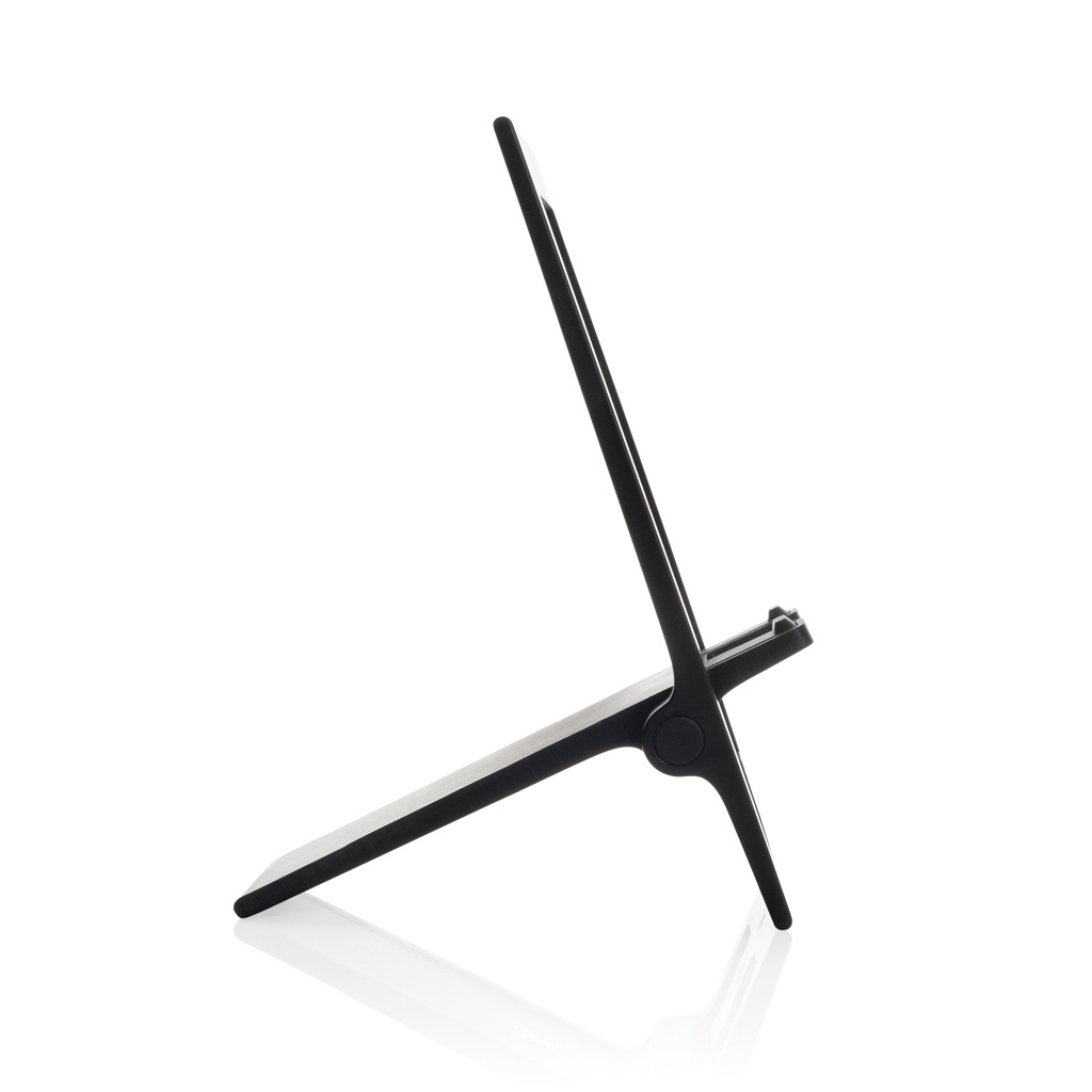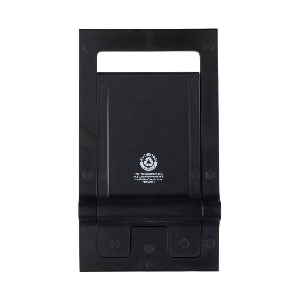 Плоская и складная подставка для телефона из переработанного RCS ABS. Подставка поставляется в плоском и сложенном виде и может быть разложена в подставку для телефона, которая подходит для телефонов любого размера. Подставка достаточно прочная, чтобы регулировать угол обзора. С силиконовой прокладкой для поддержания телефона в оптимальном состоянии. Общее содержание переработанных материалов: 85% от общего веса изделия. Сертификация RCS гарантирует полностью сертифицированную цепочку поставок переработанных материалов. Упаковано в упаковку FSC®. Не содержит ПВХ.