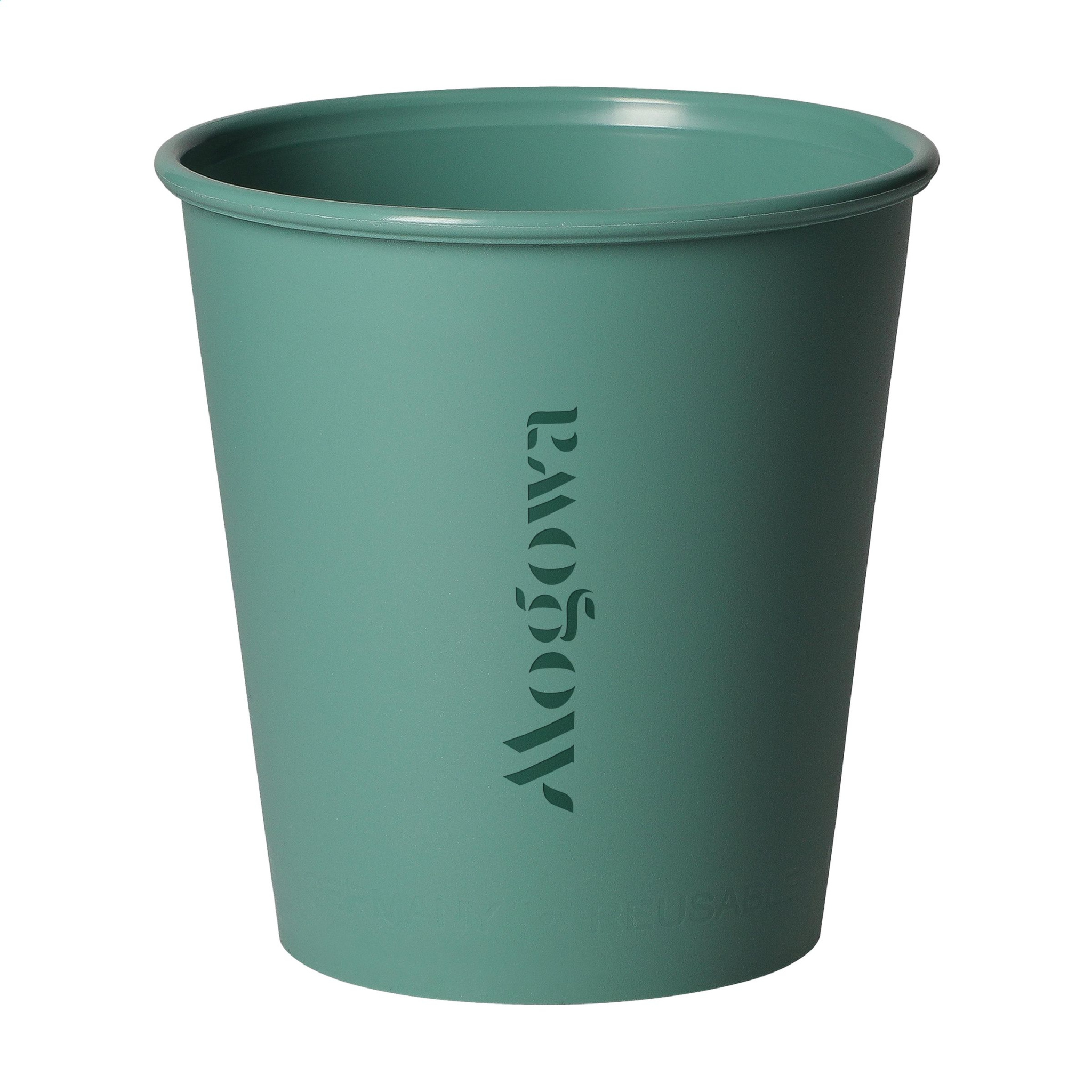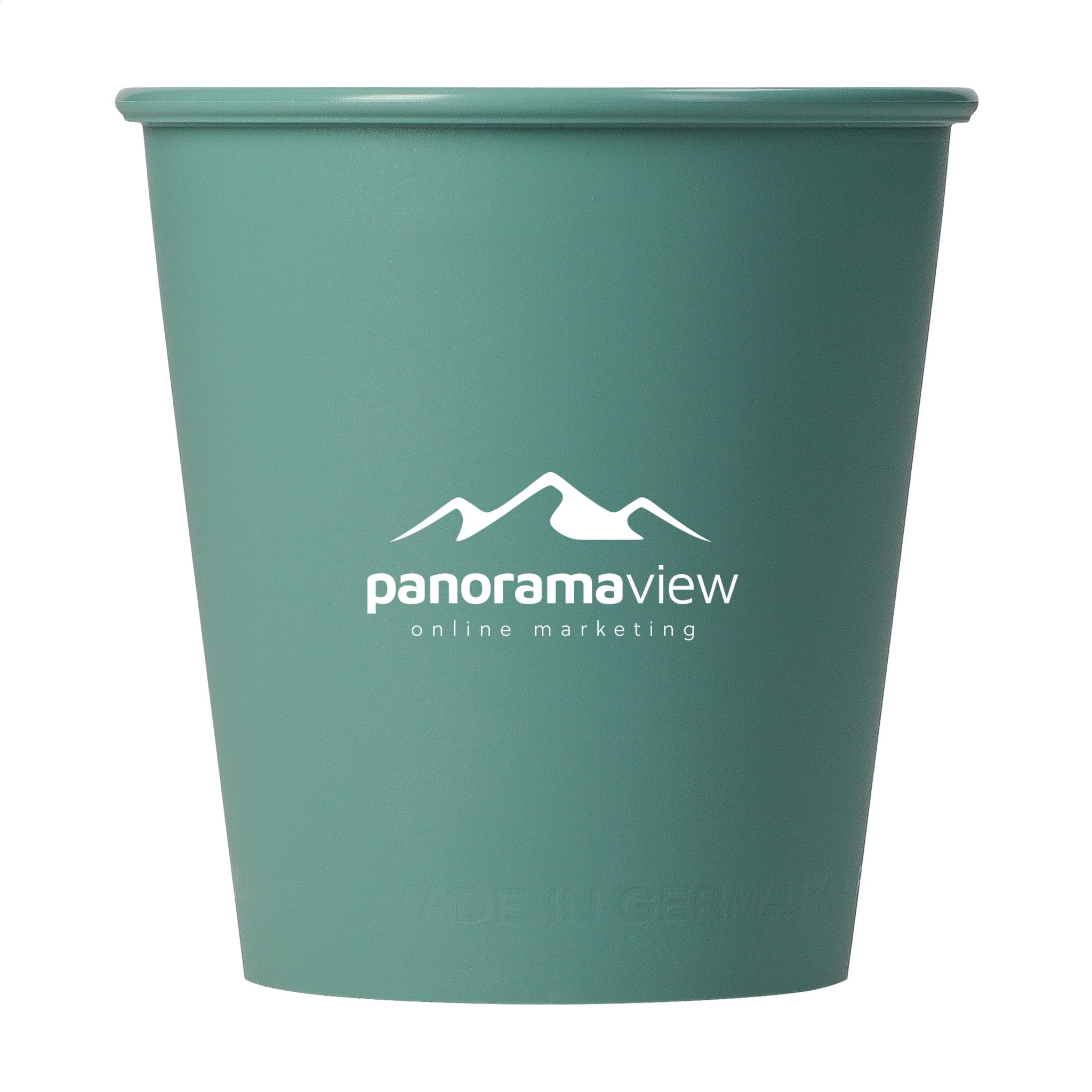 Многоразовый стаканчик для питья из биоматериала из возобновляемых источников. Этот стаканчик, который можно сложить один в другой, является хорошей альтернативой одноразовому кофейному стаканчику. Подходит практически для любой кофемашины. 100% перерабатываемый и не содержит бисфенол А. Этот продукт можно мыть в посудомоечной машине. Рекомендуется мыть вручную, чтобы сохранить отпечаток. Емкость 200 мл. Сделано в Германии.