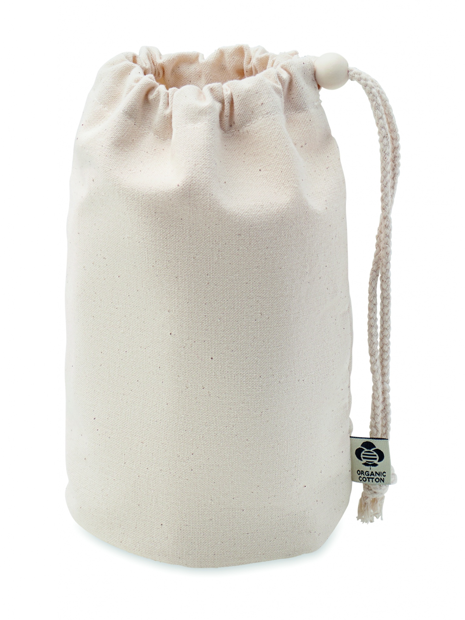 Небольшая сумка-мешок для аксессуаров из органического хлопка. 220 гр/м². Имеет внутренние сетчатые отделения и деревянную застежку.