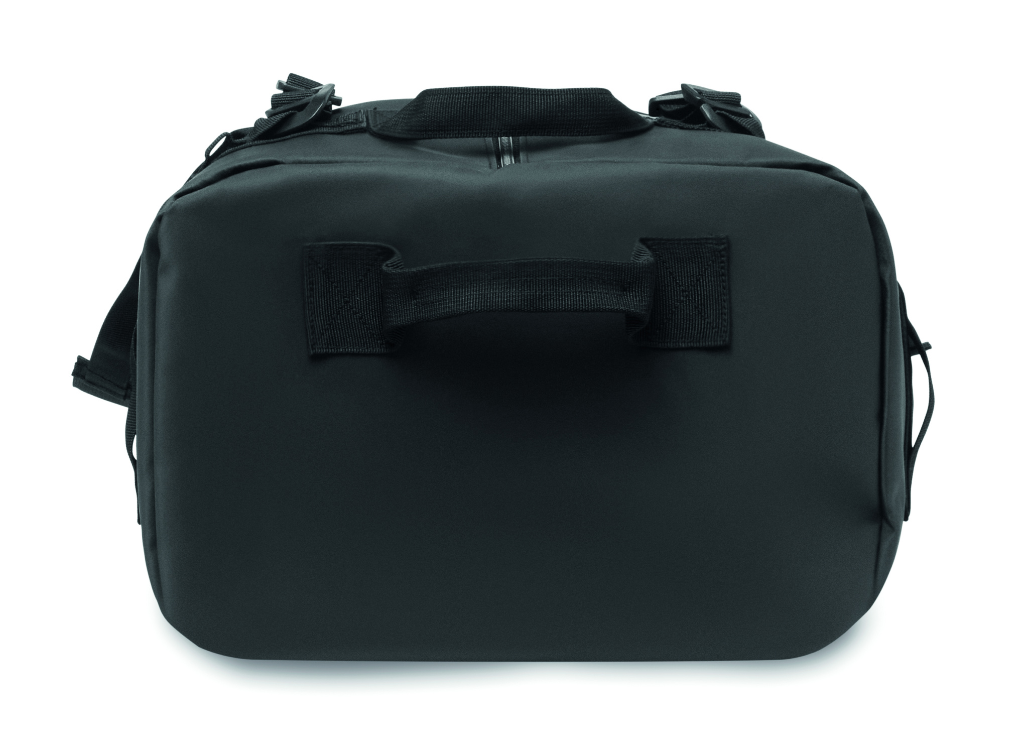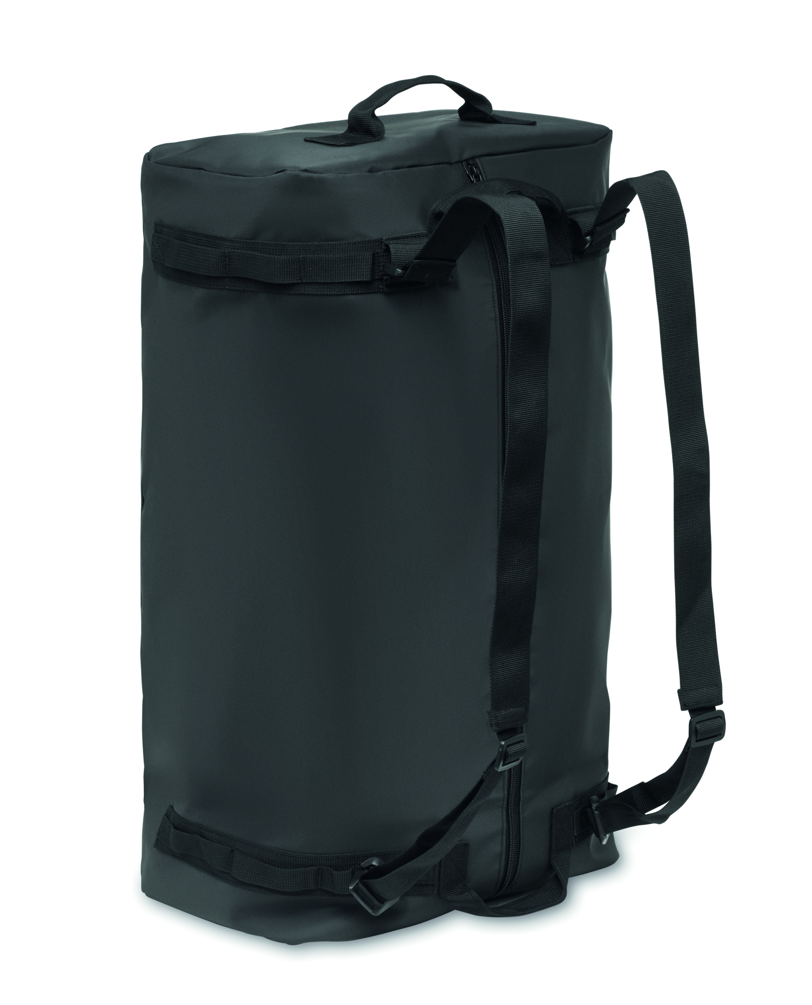 Large duffle bag, sports or travel bag which can also be used as a backpack in 50C tarpaulin with zippered inside compartment. It has a detachable and adjustable shoulder strap and has RPET lining.