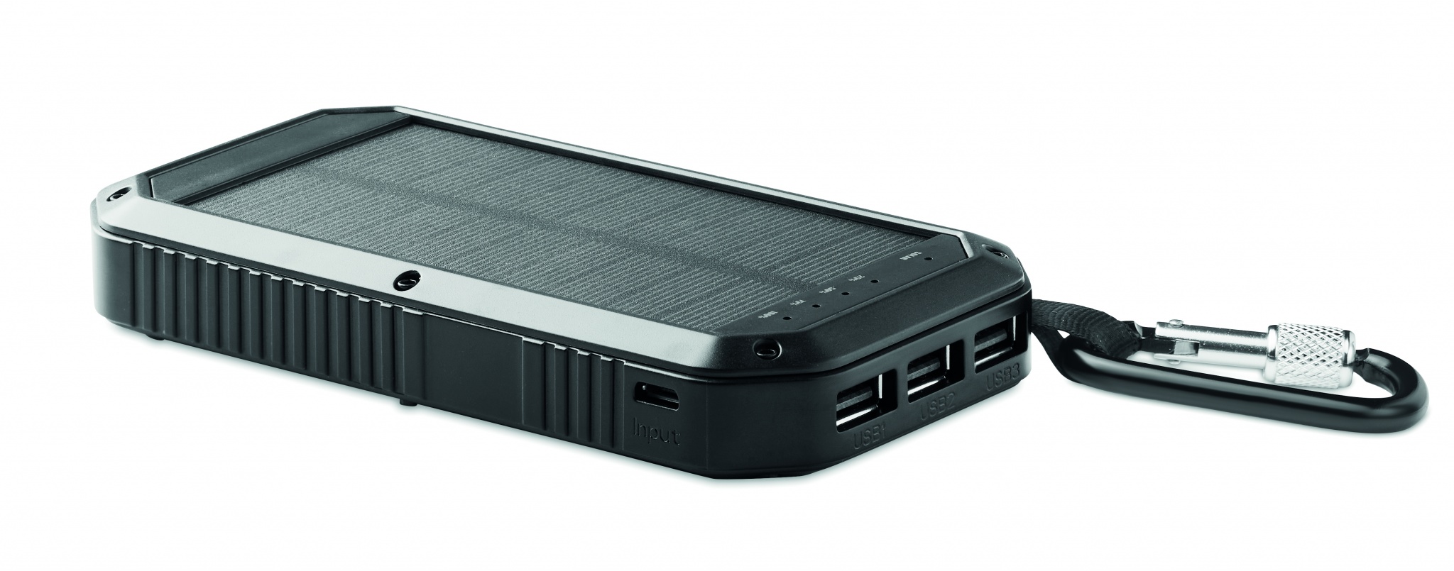 Зарядное устройство на солнечной батарее 8000 мАч со световой индикацией. В комплект входит фонарь с 21 светодиодом и USB-кабель с разъемом micro usb.