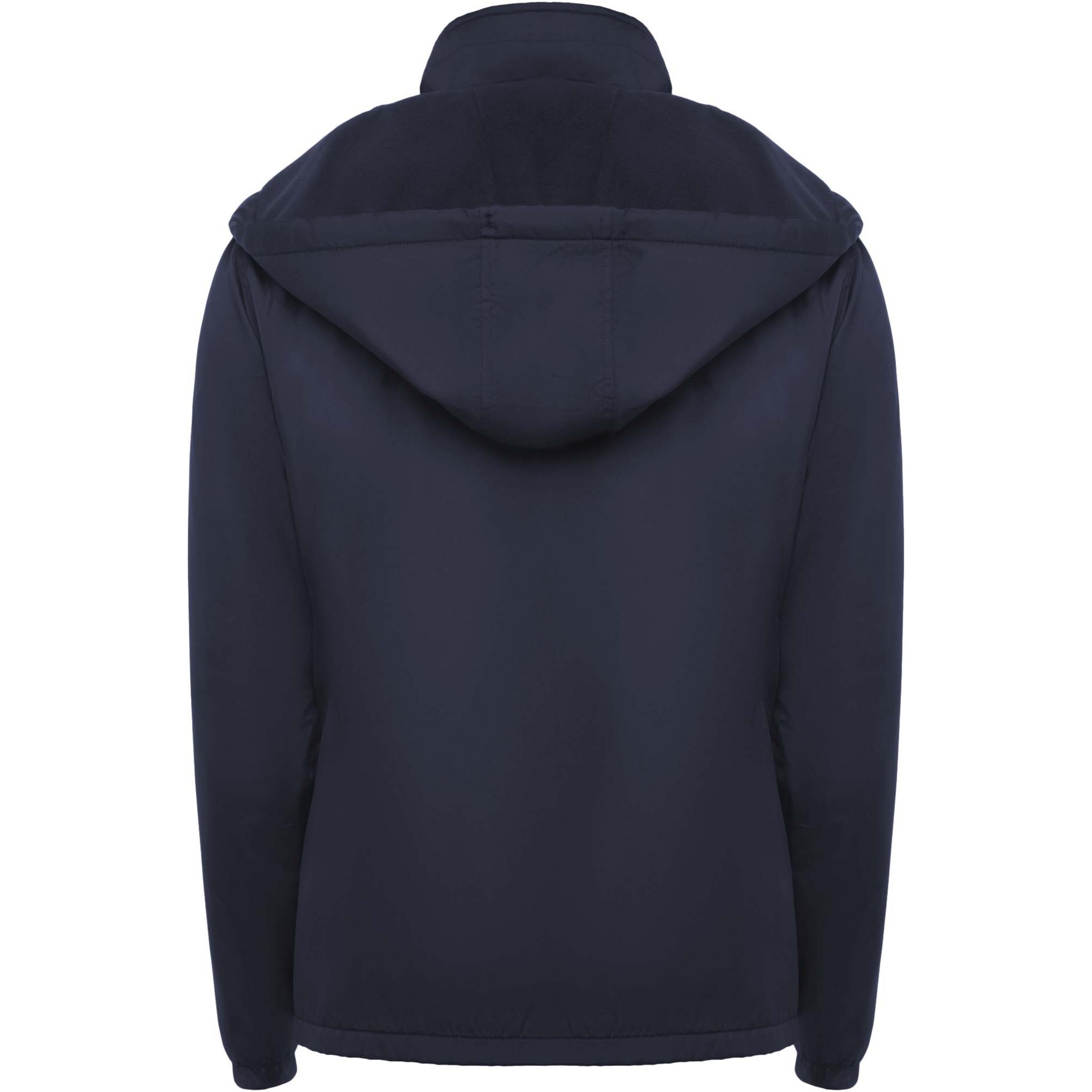 Легкая водонепроницаемая куртка. Высокий воротник и складной капюшон с регуляторами. Подкладка из микрофлиса. Молния спереди и защита для подбородка. Эластичные манжеты. Два боковых кармана на молнии. Внутренний левый нагрудный карман. Съемная этикетка. Водонепроницаемая. Ветрозащитная.