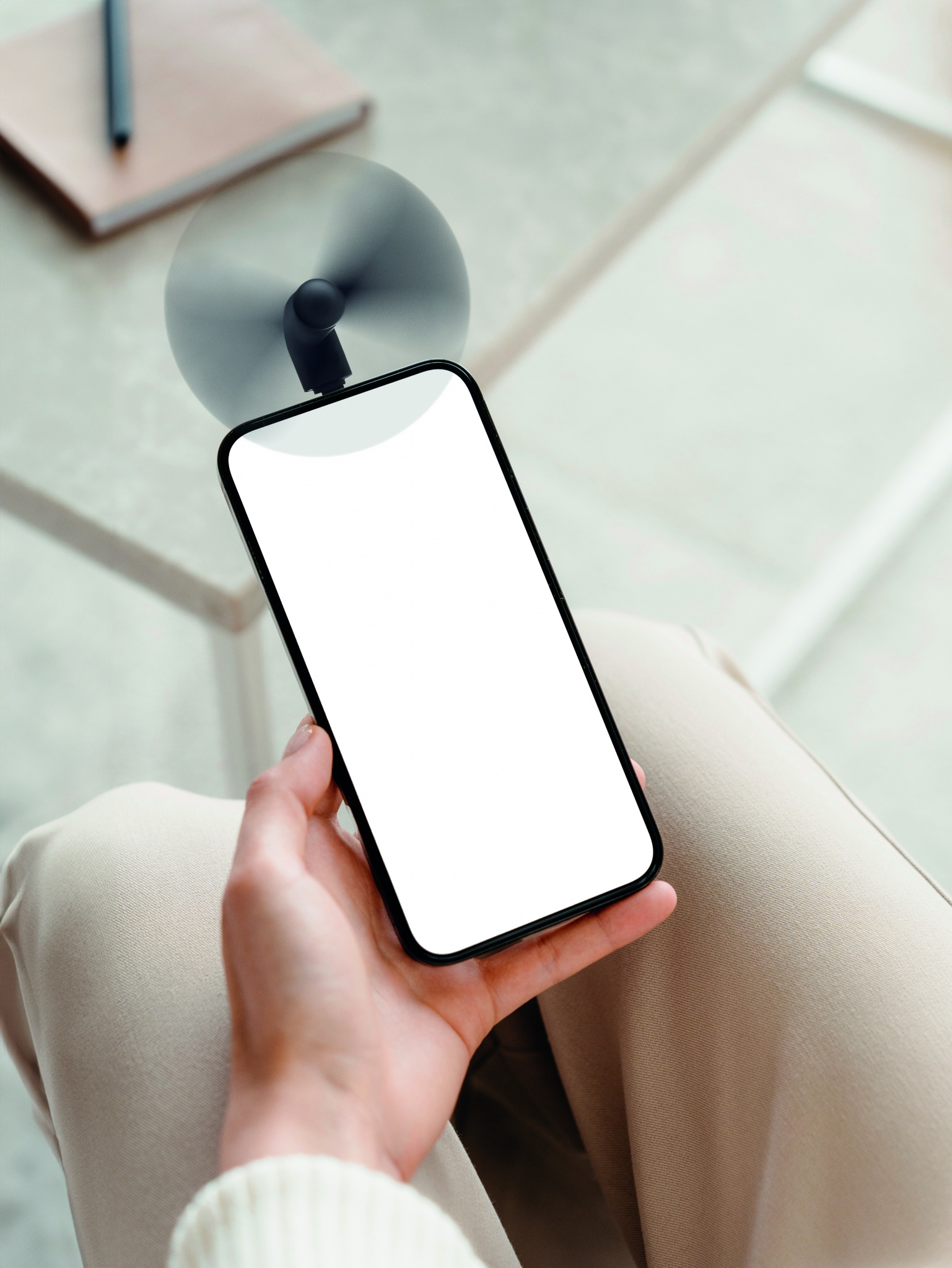 Портативный USB-С вентилятор для смартфона из полимерного пластика.