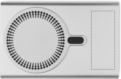 Magnetic wireless charger (15W) in recycled aluminium and power bank (5000 mAh). Output: DC 9V/1.66A. Supports quick charging technology (20W). In/Output: Type-C. Power delivery (PD) support to charge the newest laptop MacPro®. In/Output: Type-C.