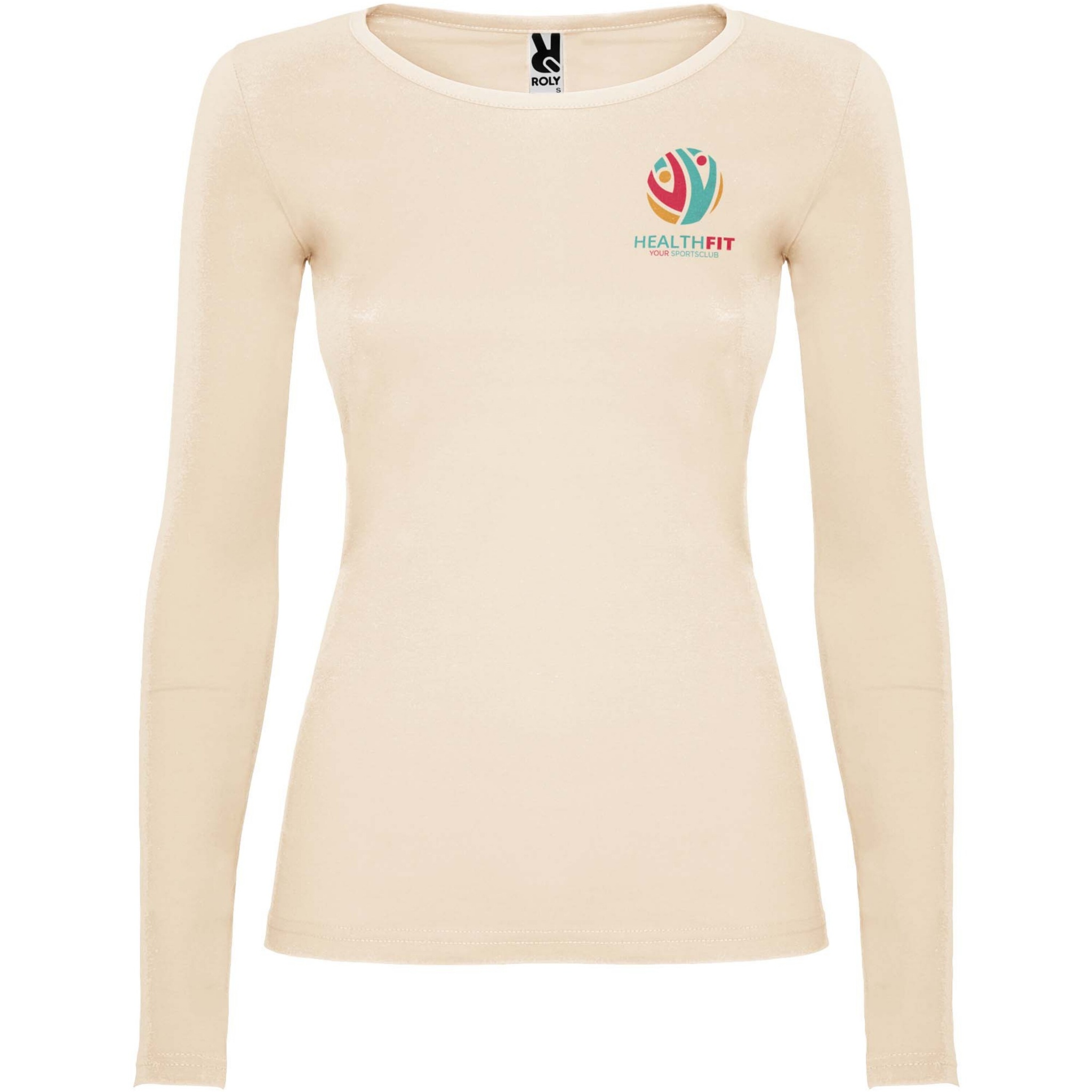 Полуприталенная футболка с длинными рукавами и горловиной с тонкой окантовкой. Без манжет. Боковые швы. Съемная этикетка.