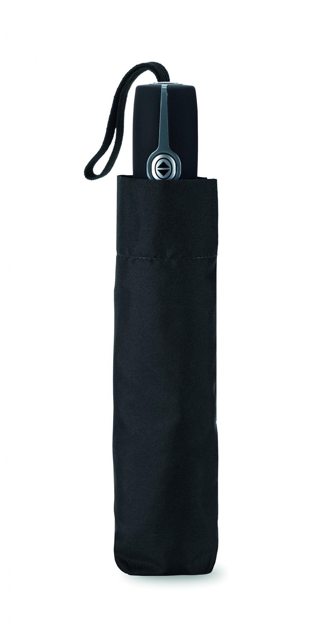 Sektionsparaply, 21 tum med stormfunktion i 190T pongee material med pläterat stålskaft, svarta med 2 sektioner glasfiber och kromade metallspetsar. Svart gummerat handtag med kupning. Viks ihop i tre sektioner. Automatisk stängning och öppning. Inkluderar matchande påse.