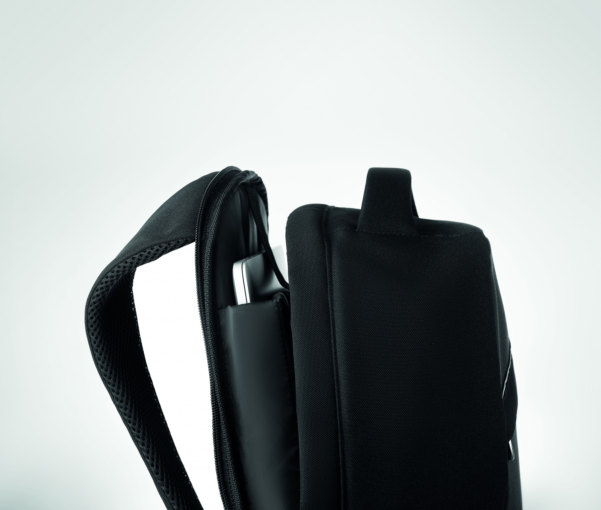 Dataryggsäck i 600D RPET med vadderad axelrem med innerfack. Fack för 13-tums laptop. Huvudfack med blixtlås mot ryggen för att förhindra stöld.
