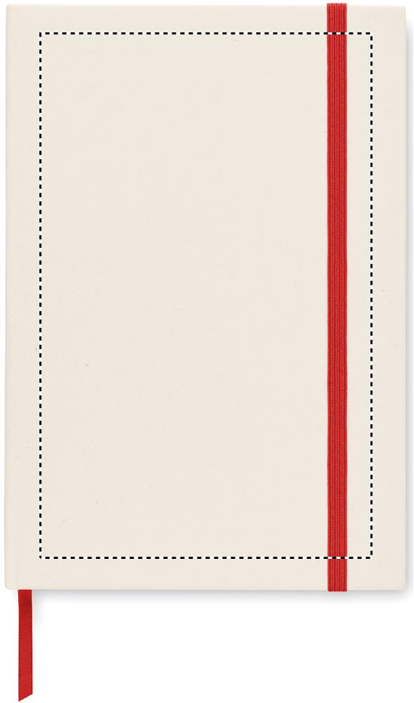 A5 Anteckningsbok med hårt omslag och 160 linjerade sidor (80 ark 80 gsm) tillverkad av 70 % återvunnen mjölkkartong och 30 % återvunnet papper. Inbunden. Elastiskt band, bokmärks band.