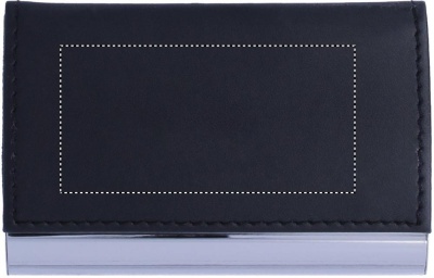 Presentset med kulspetspenna i metall med vridmekanism, nyckelring i PU/ och visitkorthållare. Exklusiv presentask. Pennan har svart bläck.