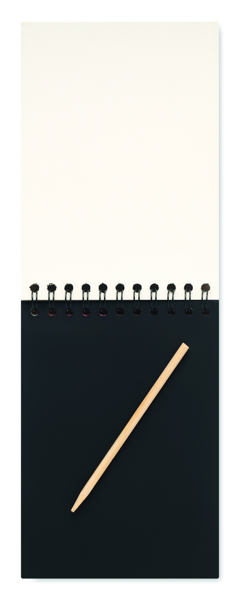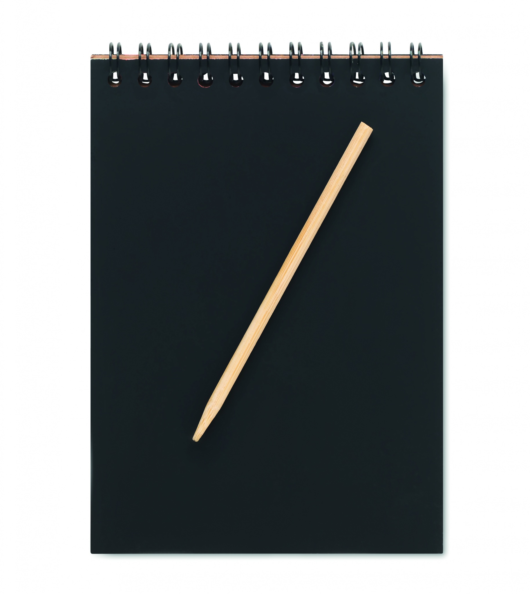 Kul ringbunden anteckningsbok med 10 svarta skrapblad och träpenna. Bladen är svarta och färglada motiv framträder genom attdu skrapar bort det svarta lagret med träpennan.