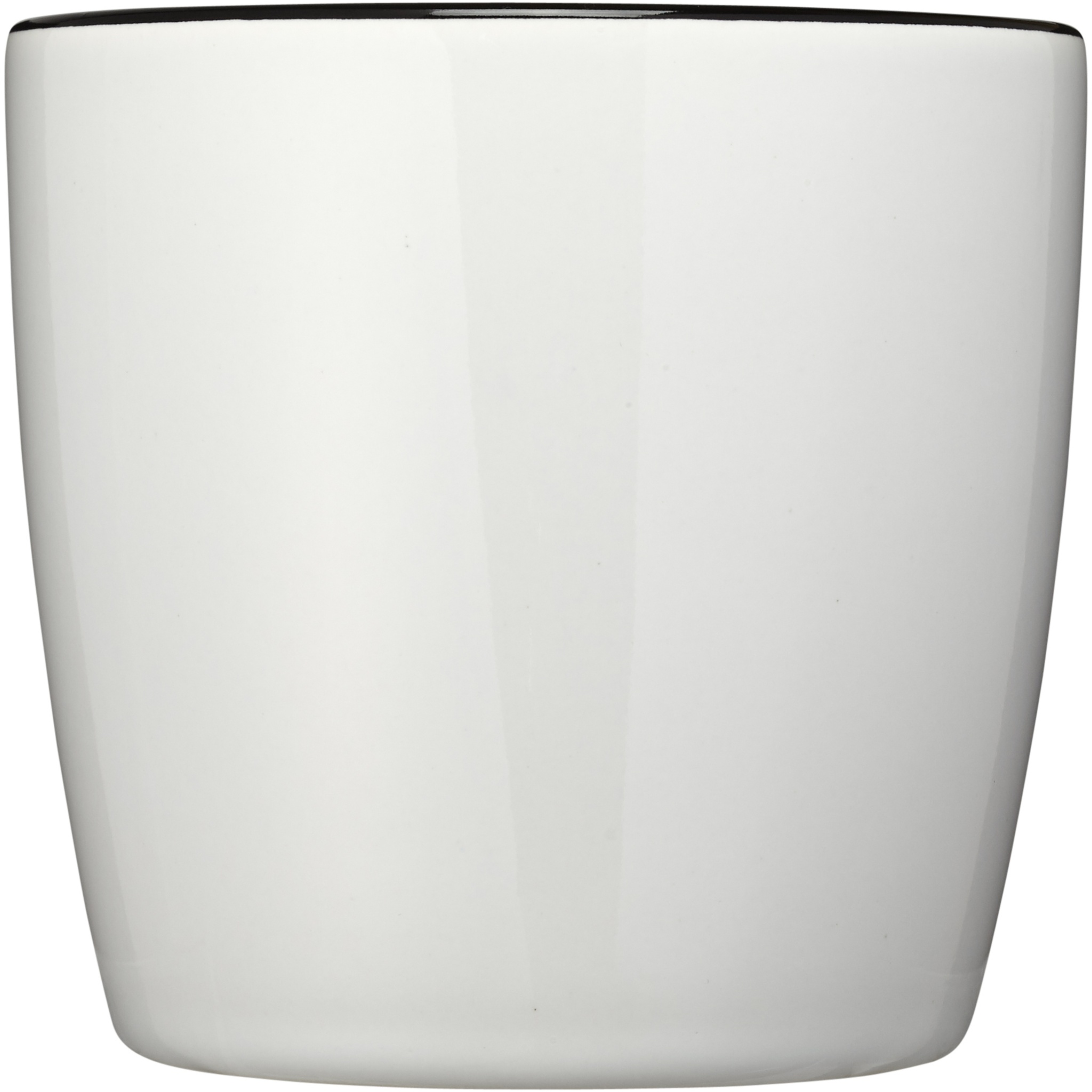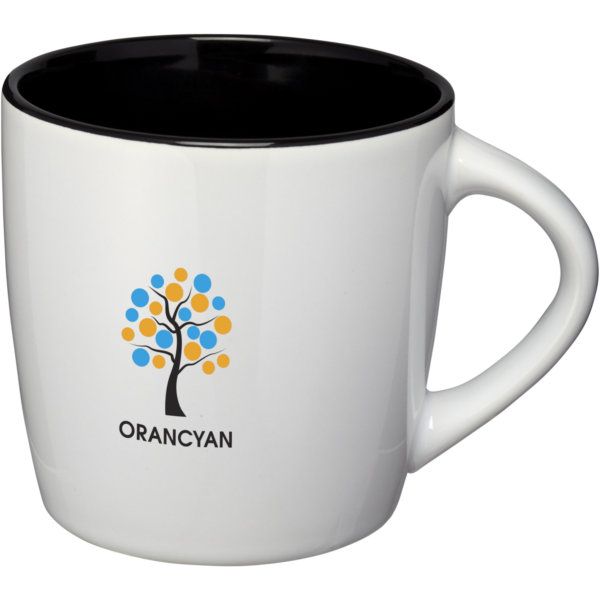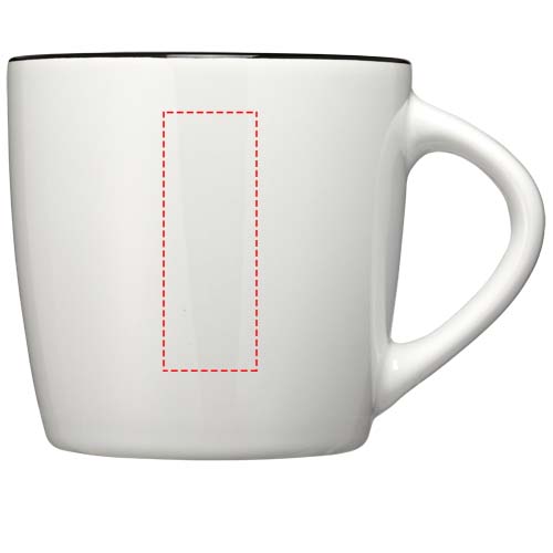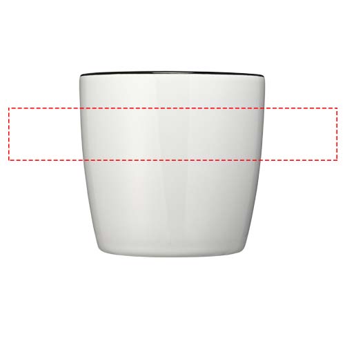 Att dricka kaffe ur en vackert utformad mugg smakar alltid bättre. Så varför inte välja den keramiska muggen Aztec? Den blanka utsidan ger tillräckligt med utrymme för att lägga till en logotyp eller ett meddelande, och färgaccenten på insidan gör att muggen på 340 ml sticker ut ännu mer. Aztec-muggen (inklusive tryck) är diskmaskinssäker enligt EN12875-1 för minst 125 tvättar.