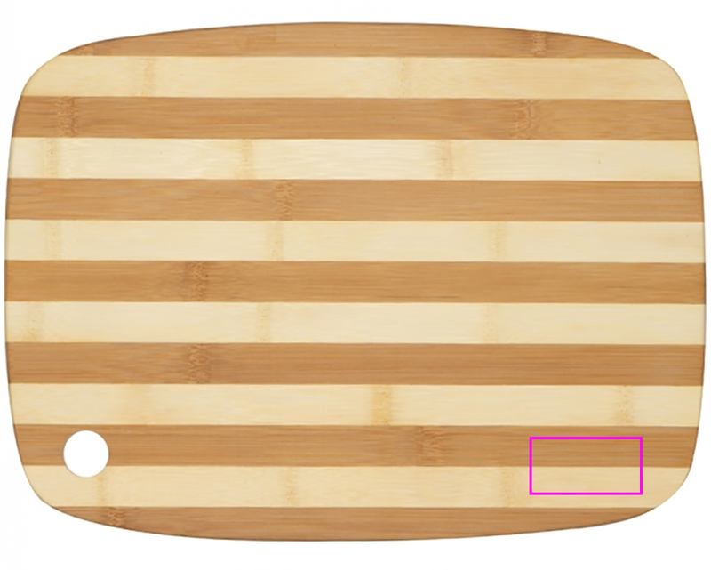 Stor skärbräda av bambu - perfekt för att skära stekt kött eller snacks. Din logotyp kommer att graveras i det nedre högra hörnet.