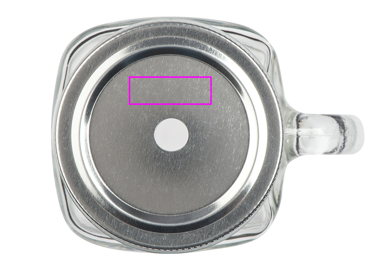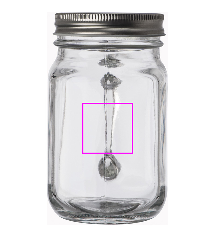 Glaskanna (450 ml) med metallskruv och halmhål (halm ingår ej). Din logotyp kommer att lasergraveras på skruvlocket.
