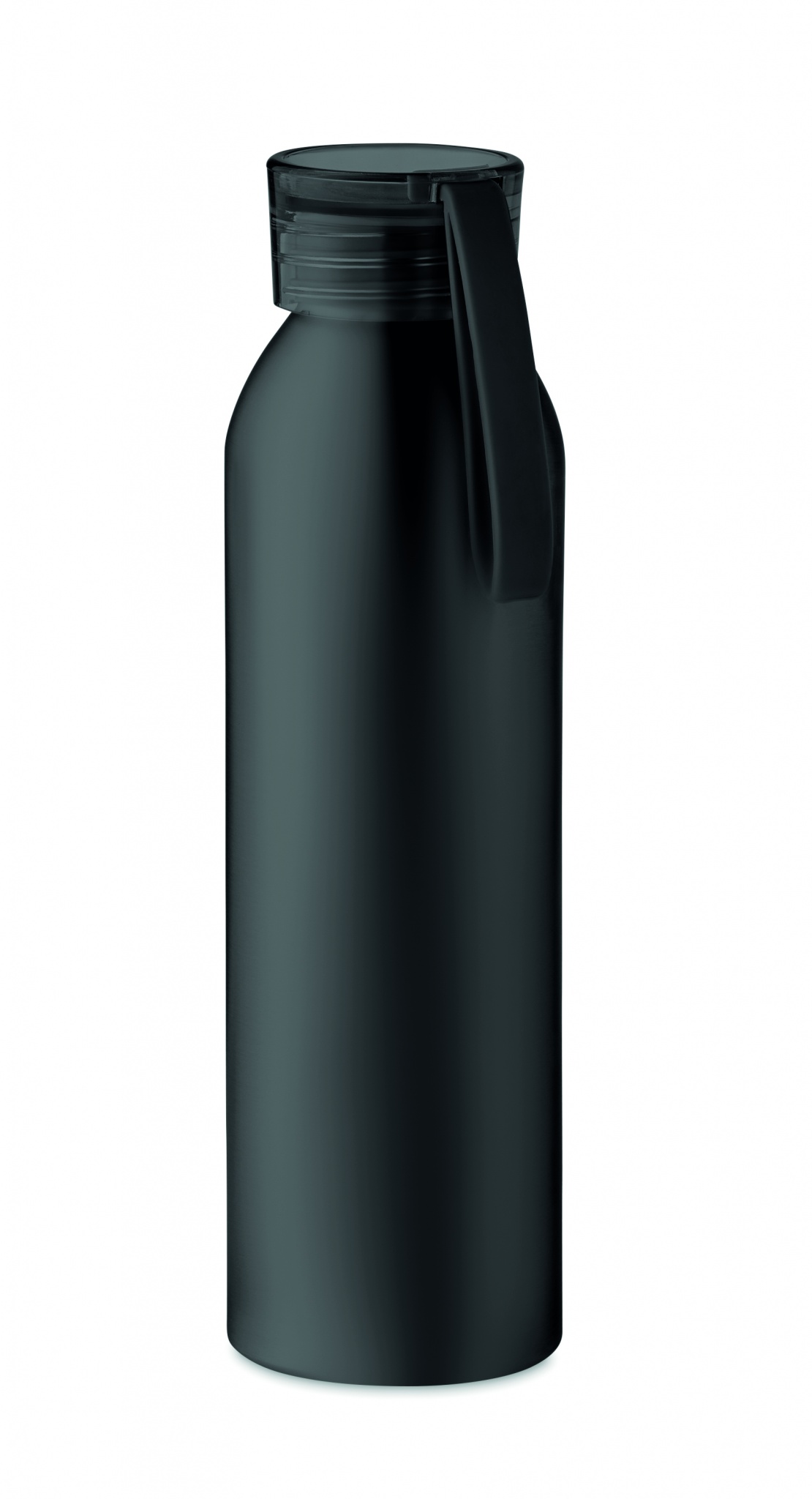 Flaska i återvunnen aluminium med PS-locket och silikonhängare. Kapacitet: 600 ml. En enkel och lätt flaska för vardagen och utmärkt för att öka din varumärkesexponering. Det är viktigt att hålla vätskebalansen under dagen, så fyll den här flaskan med vatten och ha den med dig. Läcker inte. Tål ej diskmaskin.