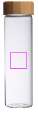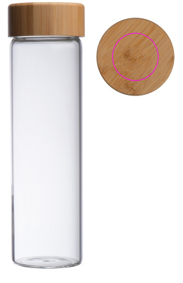 Glasflaska med bambulock och 500ml fyllningskapacitet. Din logotyp kommer att graveras på locket.