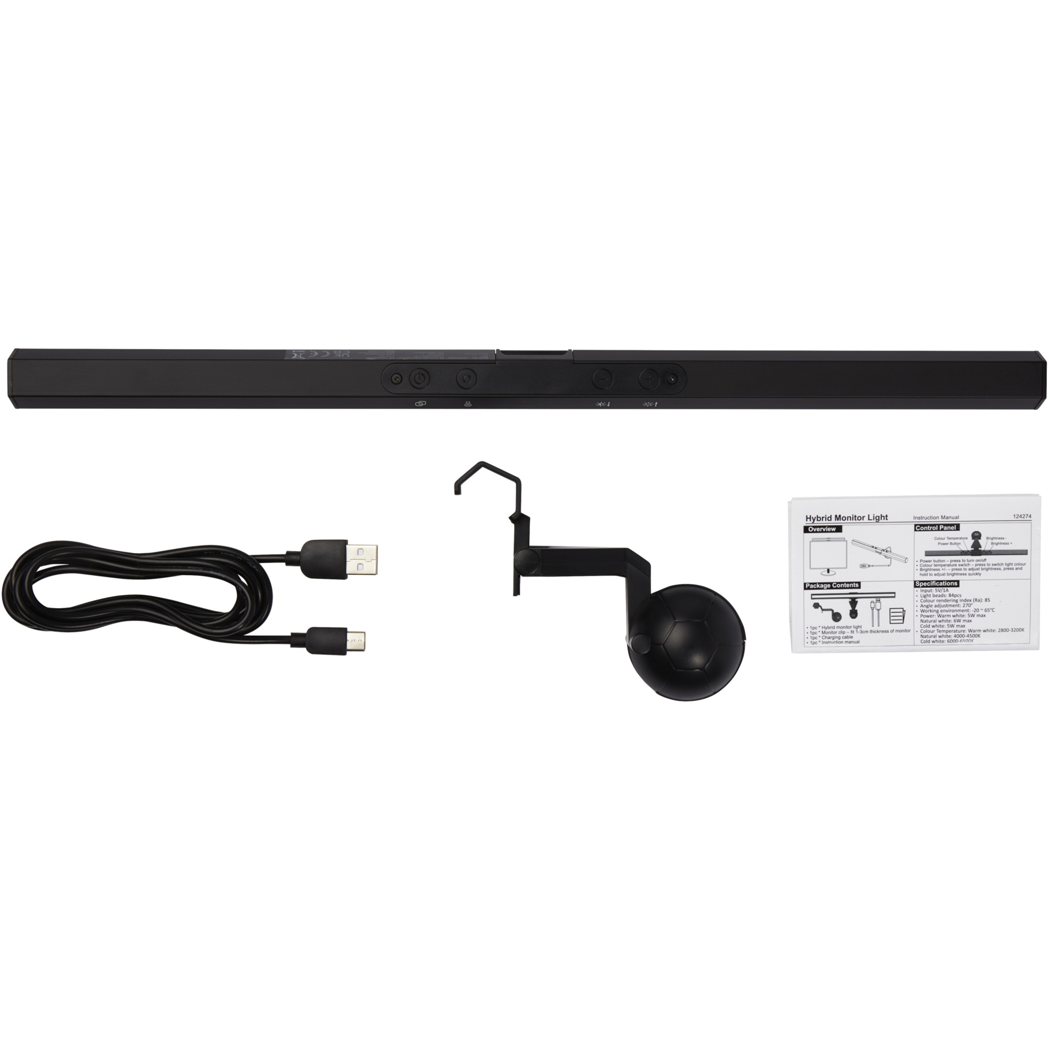 Skärmljus med justerbar vinkel och en asymmetrisk optisk design som endast belyser skrivbordet och eliminerar reflekterande bländning från skärmen som kommer med de flesta vanliga skrivbordslampor. Med 84 högkvalitativa LED-pärlor avger denna lampa ett enhetligt, mjukt och icke-blinkande ljus, som kan lindra trötthet i ögonen och skydda dina ögon. Lampan passar alla skärmar med en tjocklek från 3 mm till 10 mm, utan behov av skruvar som kan skada skärmen. Justerbar ljusstyrka från 5 % till 100 % med en färgtemperatur på 2800 K–6500 K. Det varma ljuset är avslappnande och det svala ljuset gör att du kan koncentrera dig och ökar arbetseffektiviteten. Färgåtergivningsindex för skärmens ljus är mer än 85, vilket kan återställa de flesta skärmfärger. Levereras i en förstklassig kraftpapperslåda med ett färgstarkt klistermärke.