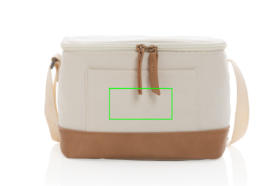 Packa din picknick i denna tjusiga kylväska. Kylväskan i 16 oz. återvunnen canvas har plats för 6 burkar. Med ett öppet frontfack och handtag. Med detaljer i PU. AWARE™ spårämne som validerar användandet av återvunnen canvas. 2% av intäkterna för varje såld Impact-produkt kommer att doneras till Water.org. 60% återvunnen bomull och 40% återvunnen polyester. Foder i PEVA.