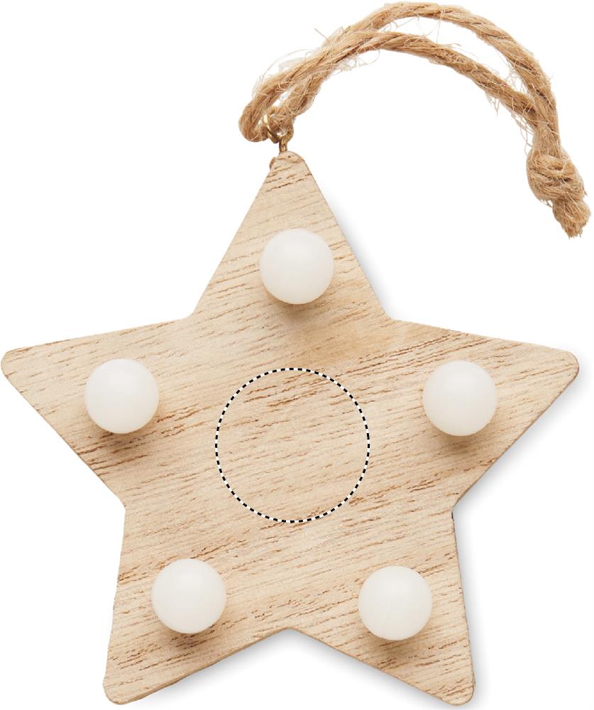 Junlgranspynt stjärna med 5 LED-lampor och upphängningssladd. 80% trä och 20%I hampa trä. Inklusive 1 CR2032-batteri.