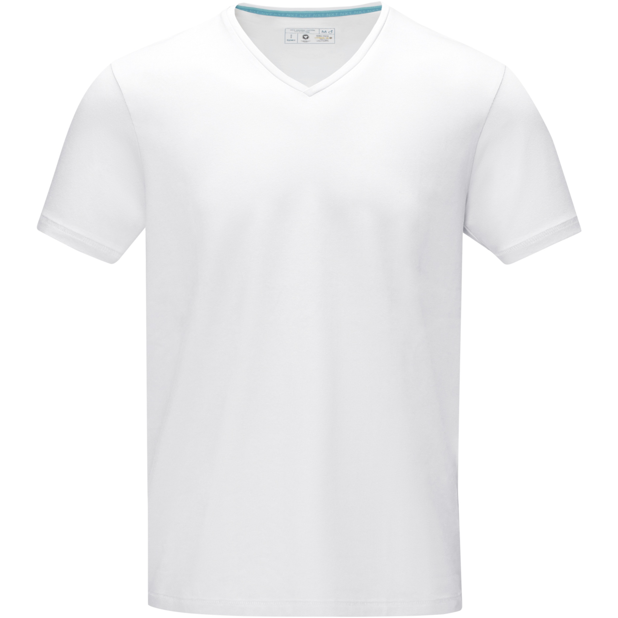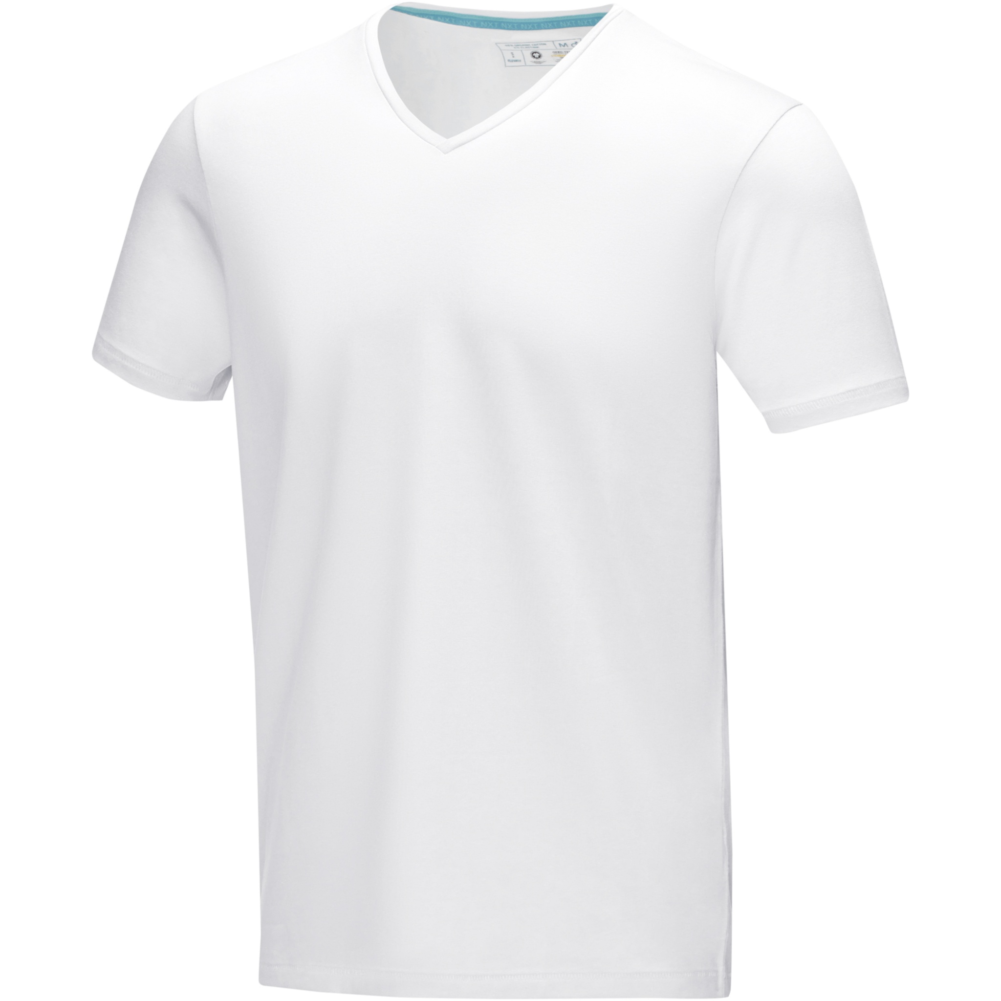 Kawartha kortärmade ekologisk V-hals t-shirt herr är ett elegant och hållbart val. Tillverkad av 95 % ekologisk bomull. Med en tygvikt på 200 g/m² är den här t-shirten inte bara bra för miljön utan också mjuk och bekväm att bära. De 5 % elastan säkerställer en mjuk och stretchig passform. Med sin V-hals och korta ärmar är den här t-shirten både hållbar och modern.