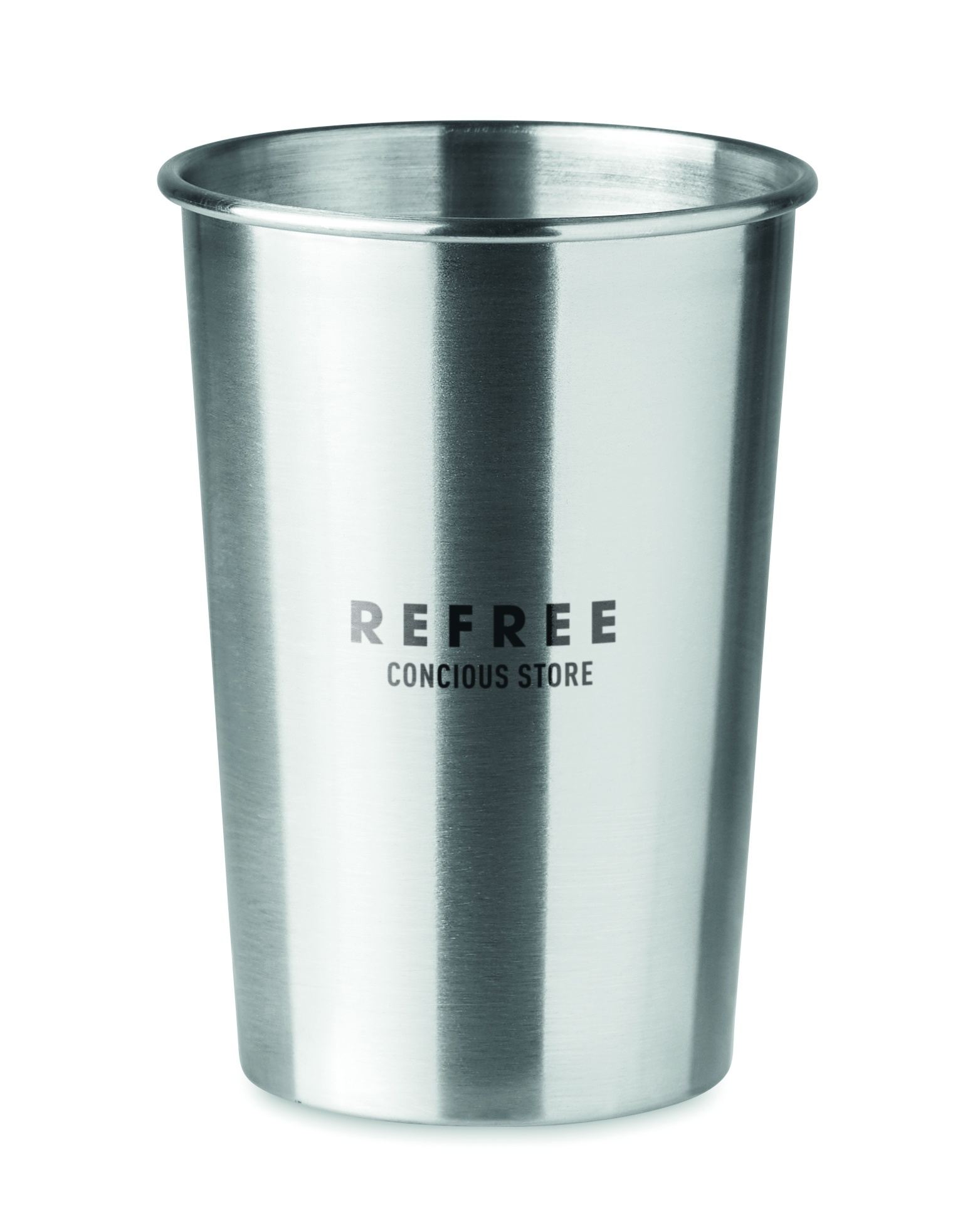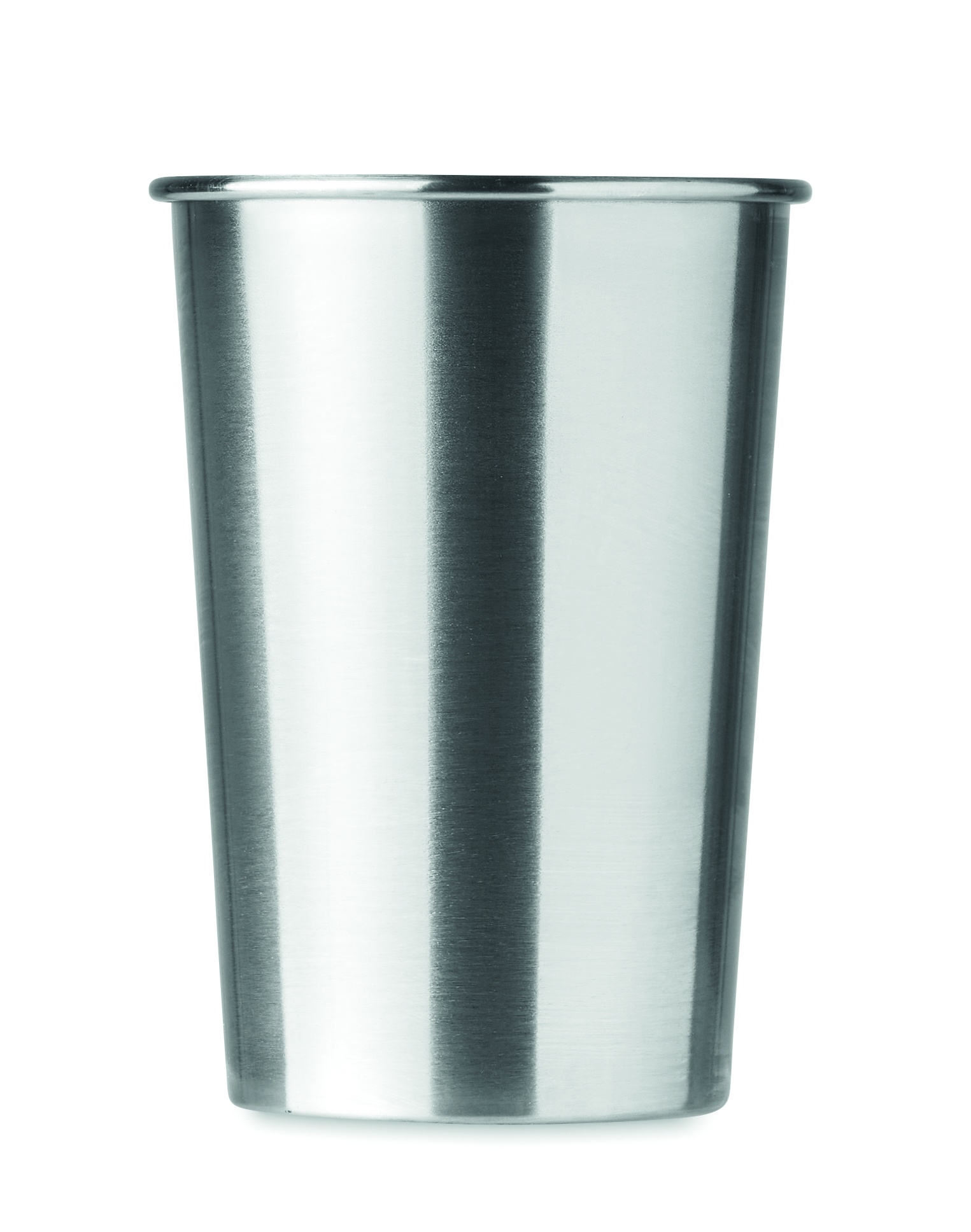 Mugg i rostfritt stål. Märks med fördel med laser för att få diskmaskinsäker märkning, övriga märkmetoder tål inte diskmaskin. Volym: 350 ml.