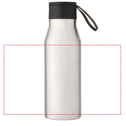 Vakuumisolerad kopparflaska i rostfritt stål med en klassisk och elegant design. Har en PU-läderrem och detalj på locket. Detta gör den idealisk för gravyr, något som kommer att markera logotypen i en silverfärg och skapa en vacker visuell effekt. Med sitt dubbelväggiga kopparvakuumisolerade 18/8 rostfria stål håller dryckerna sig varma eller kalla i flera timmar. Testad och godkänd enligt tysk lagstiftning om livsmedelssäkerhet (LFGB) och testad för ftalatinnehåll enligt REACH-förordningarna. Volymkapacitet 500 ml. Levereras i en återvunnen presentförpackning av kartong.