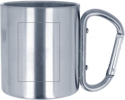 Rostfri stålmugg med karbinhake som handtag. Dubbel vägg.