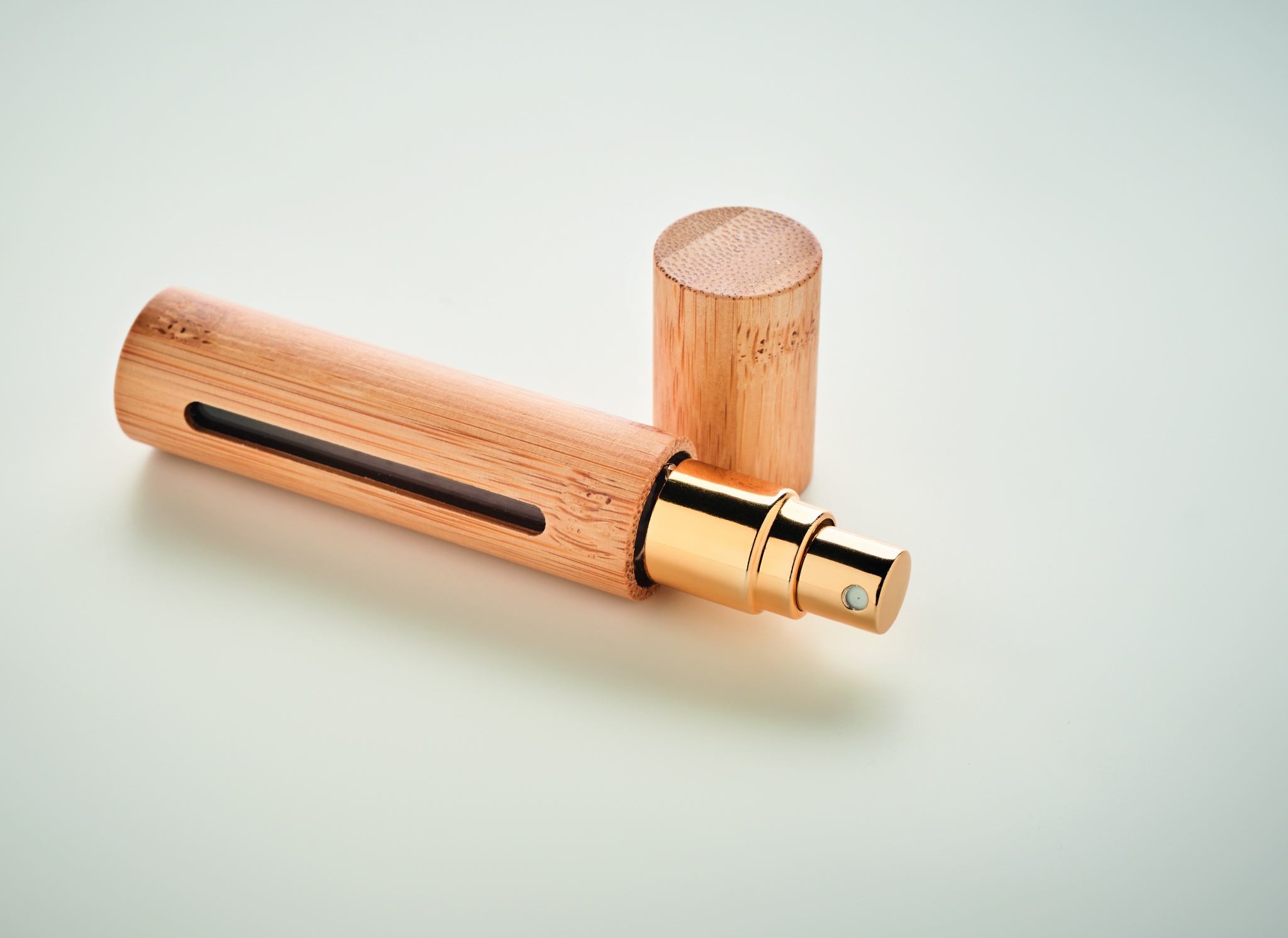 Miniparfymflaska med bambu hälje som är återpåfyllningsbat. Kapacitet: 10 ml.